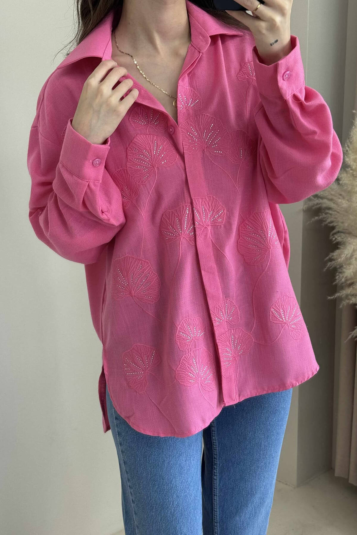 FLOWER DESIGN ONE COLOR WOMEN SHIRT PINK/ROZE