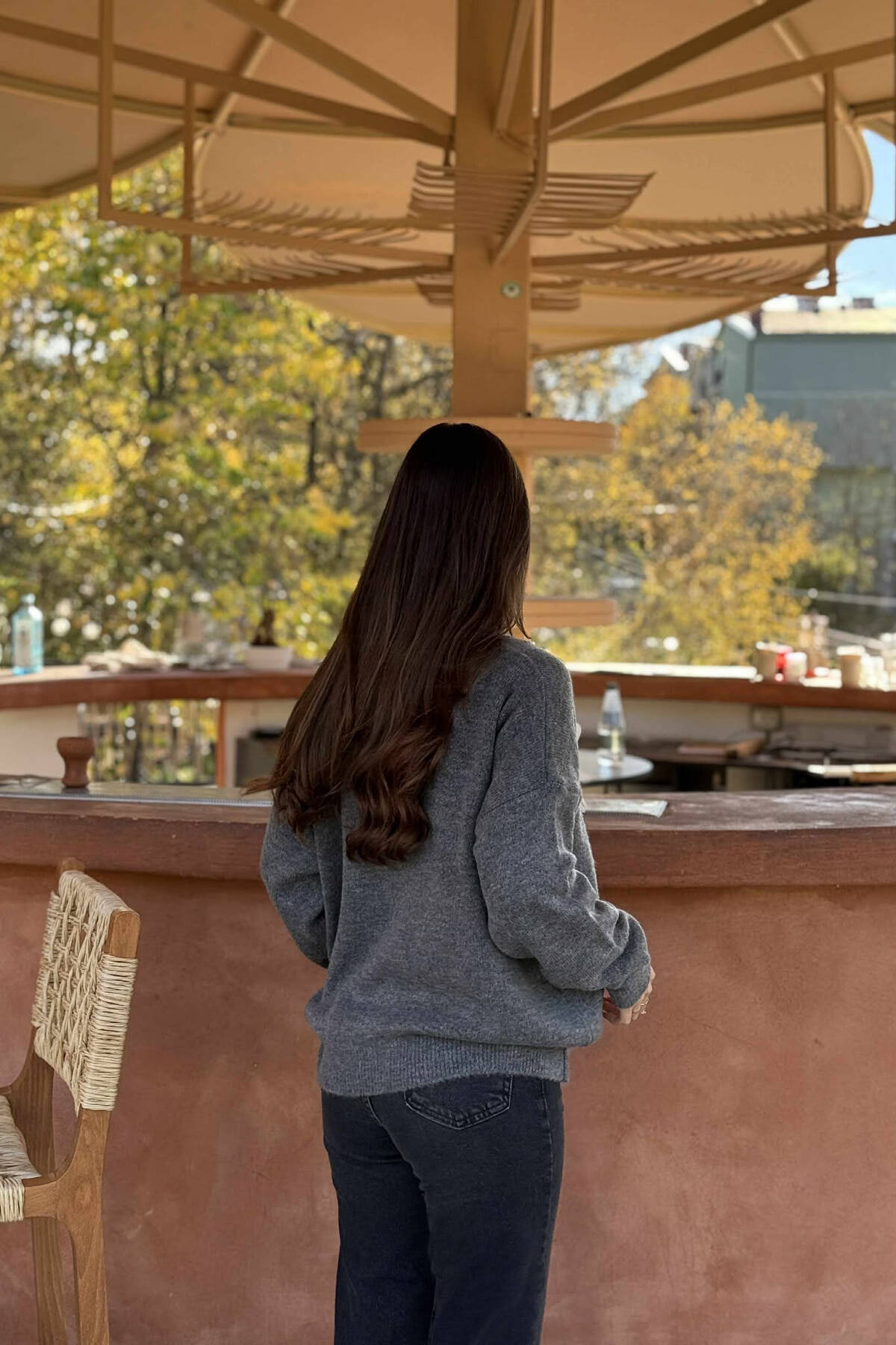 V NECK SIMPLE WOMEN SWEATER GREY/GRI