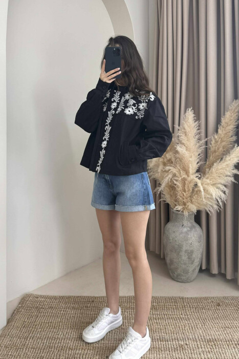 FLOWER DESIGN ZIPPER WOMEN JACKET BLACK/ E ZEZE