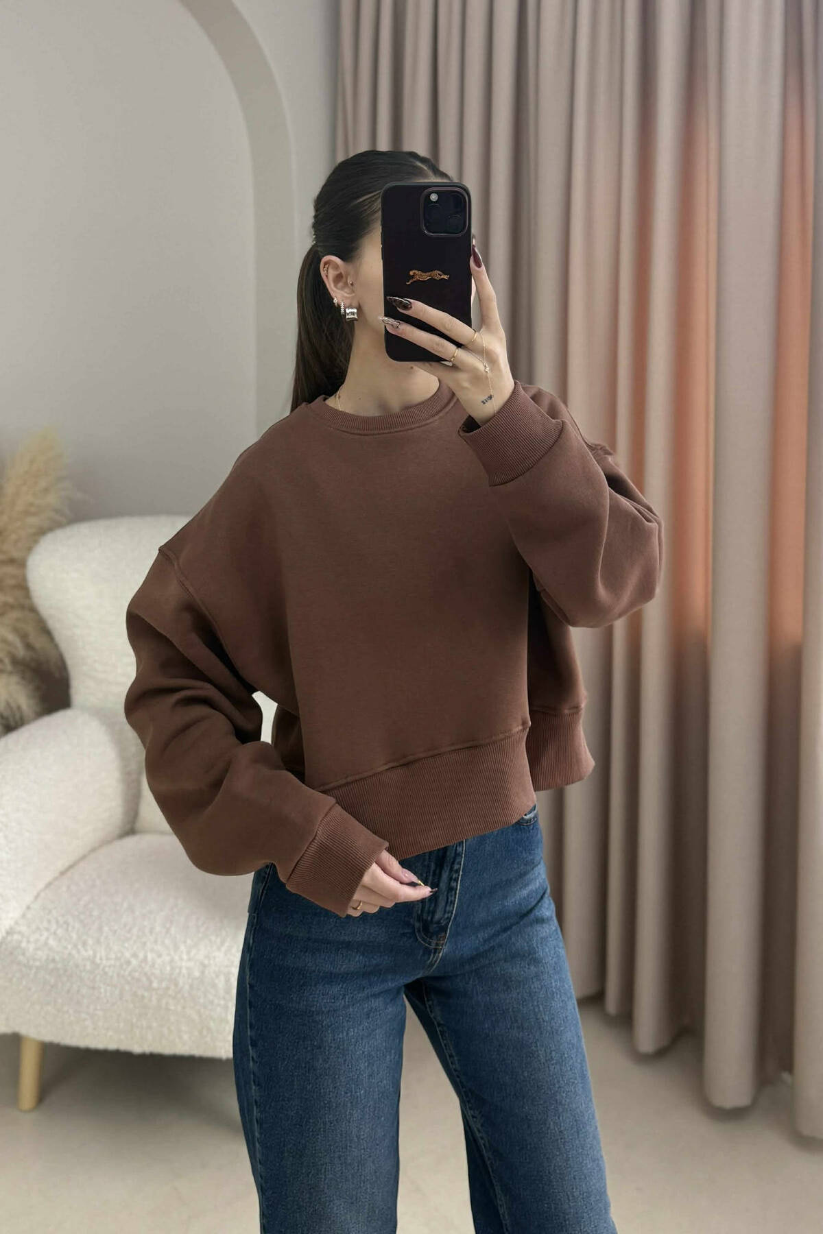 A sweater that you will love, comfortable and very warm thanks to its cotton material and fluff inside. Simple model and very easy to combine in your everyday life.