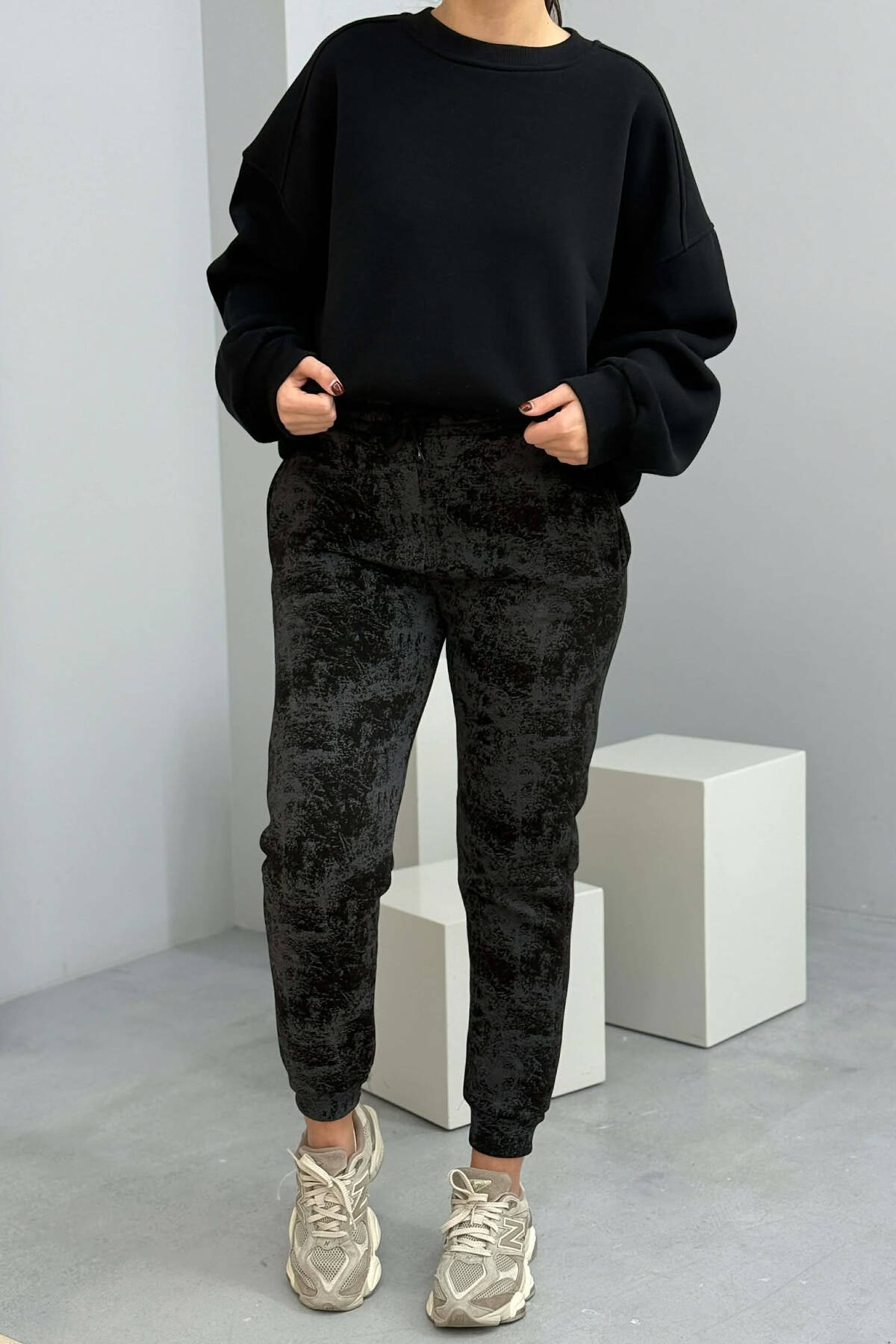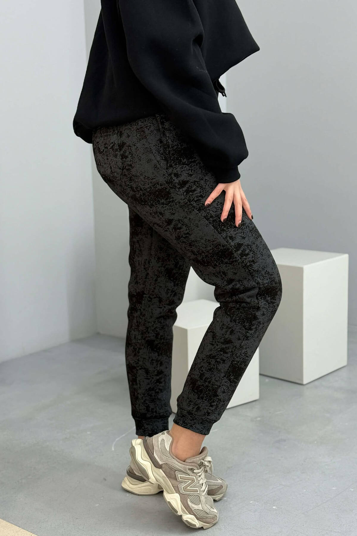 FLUFFY ELASTIC WAIST WOMEN JOGGERS DARK GREY/GEE