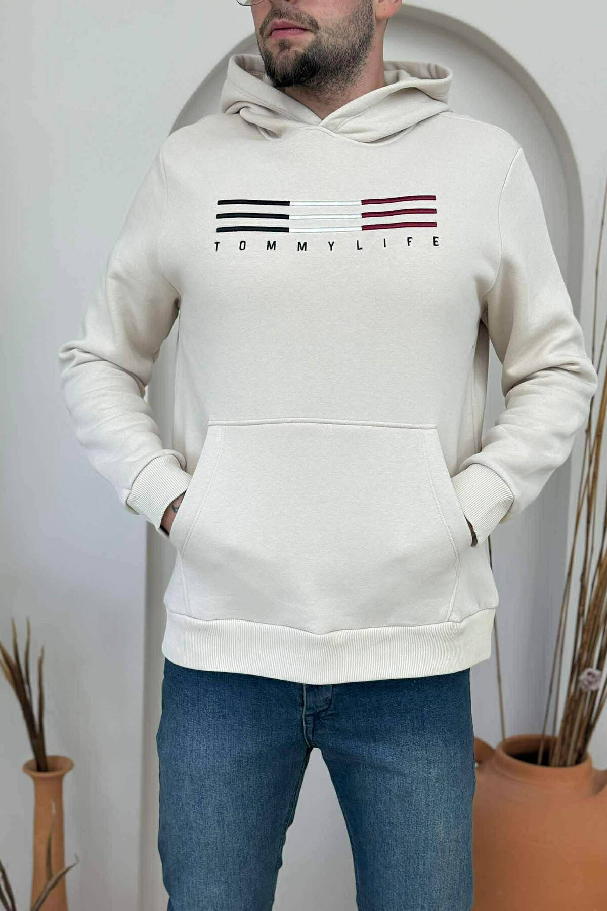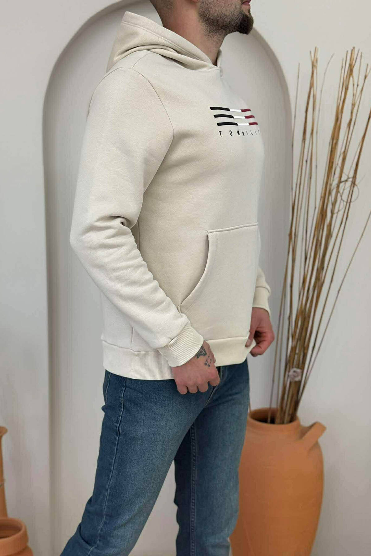 FLUFFY FRONT LOGO MEN HOODIE BEIGE/BEZHE