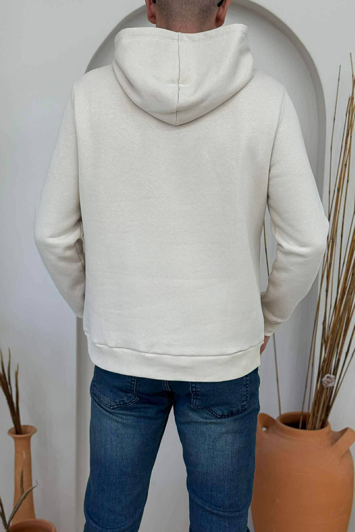 SMALL DETAIL ONE COLOR FLUFFY MEN HOODIE WHITE-E BARDHE