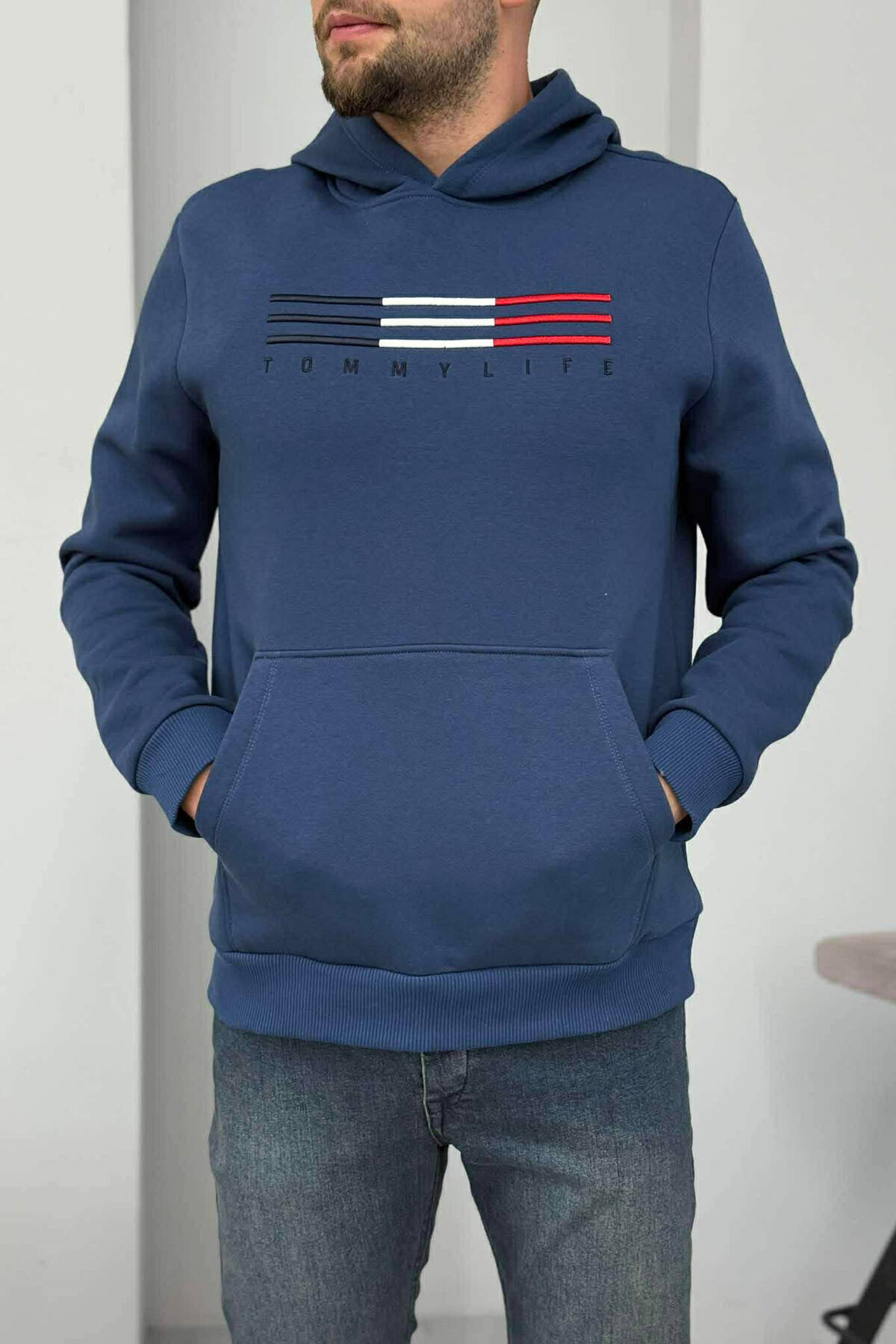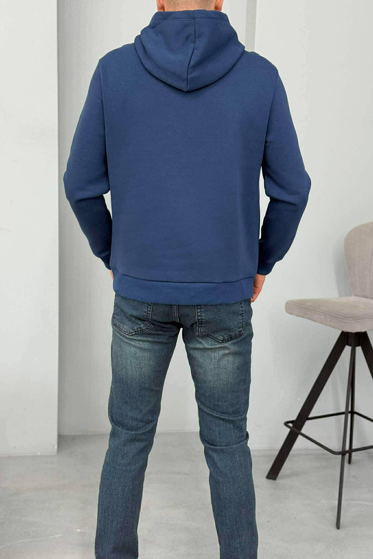 ONE COLOR SIMPLE MEN HOODIE DARK BLUE/BEE