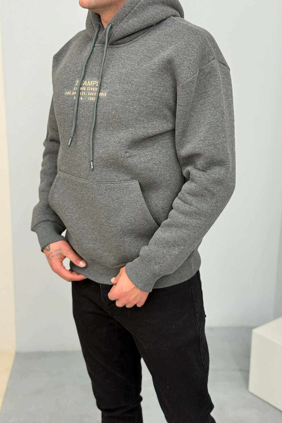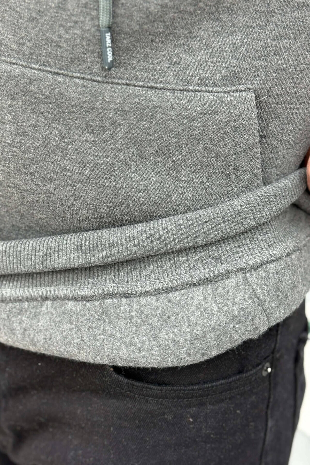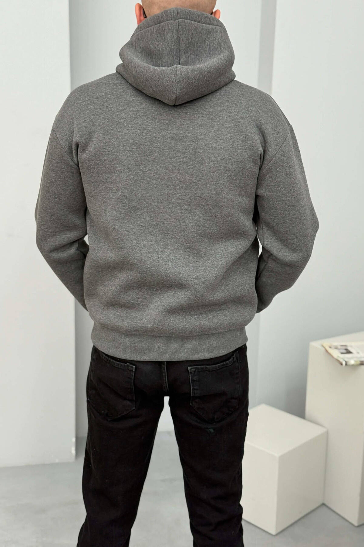 SMALL DETAIL ONE COLOR FLUFFY MEN HOODIE GREY/GRI