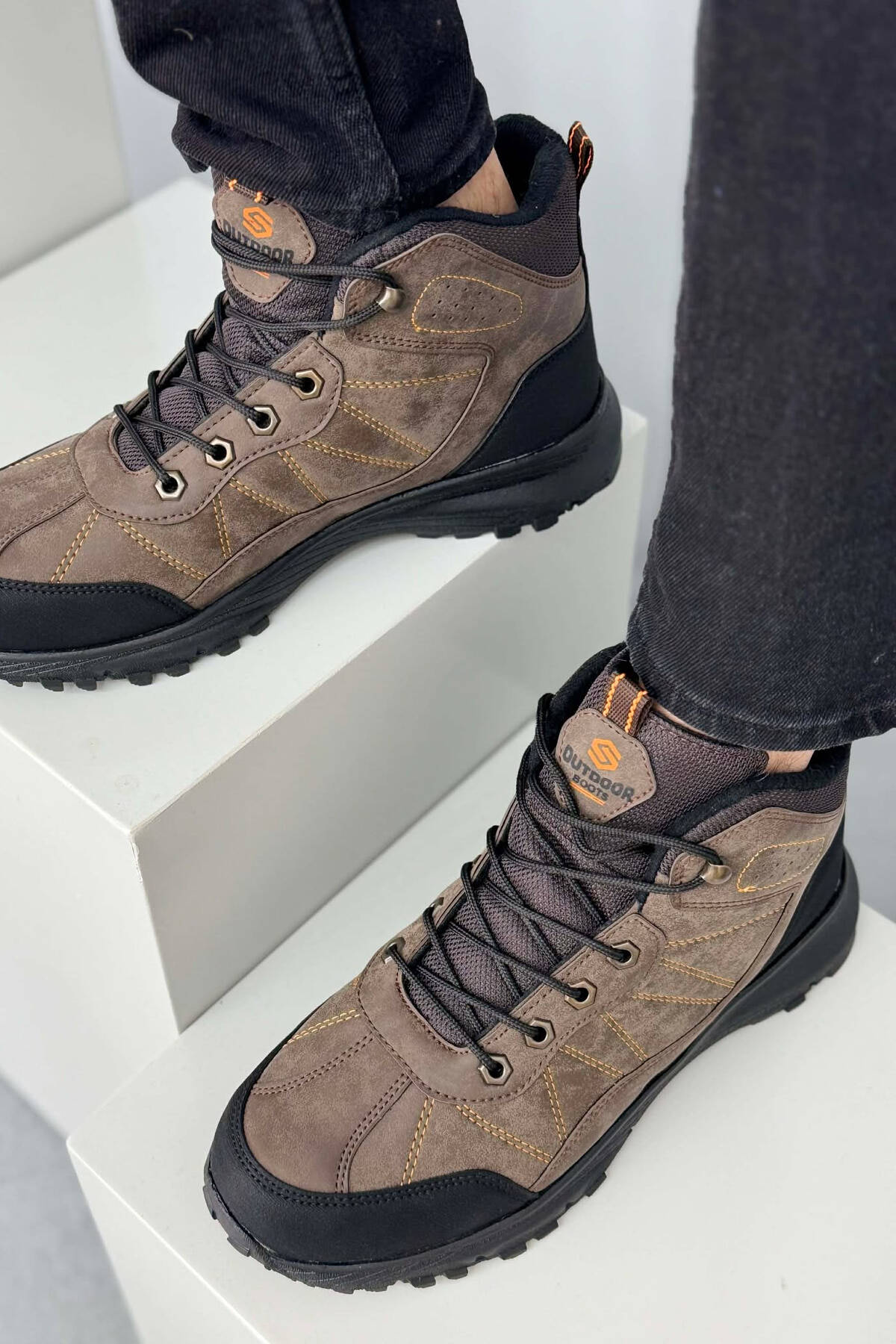 OUTDOOR TRAIL FLUFFY LACING MEN SEMIANKLE SNEAKERS BROWN/KAFE
