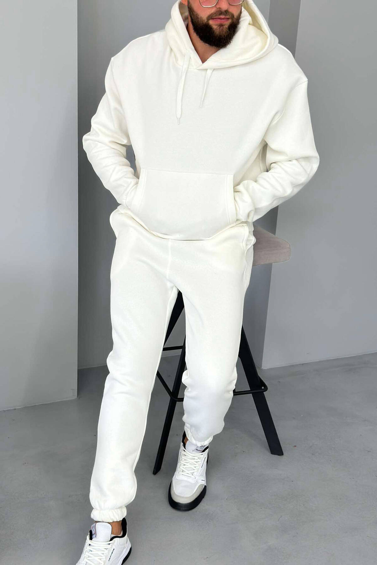 FLUFFY HODDIE + SWEATPANTS SIMPLE MAN SET WHITE-E BARDHE