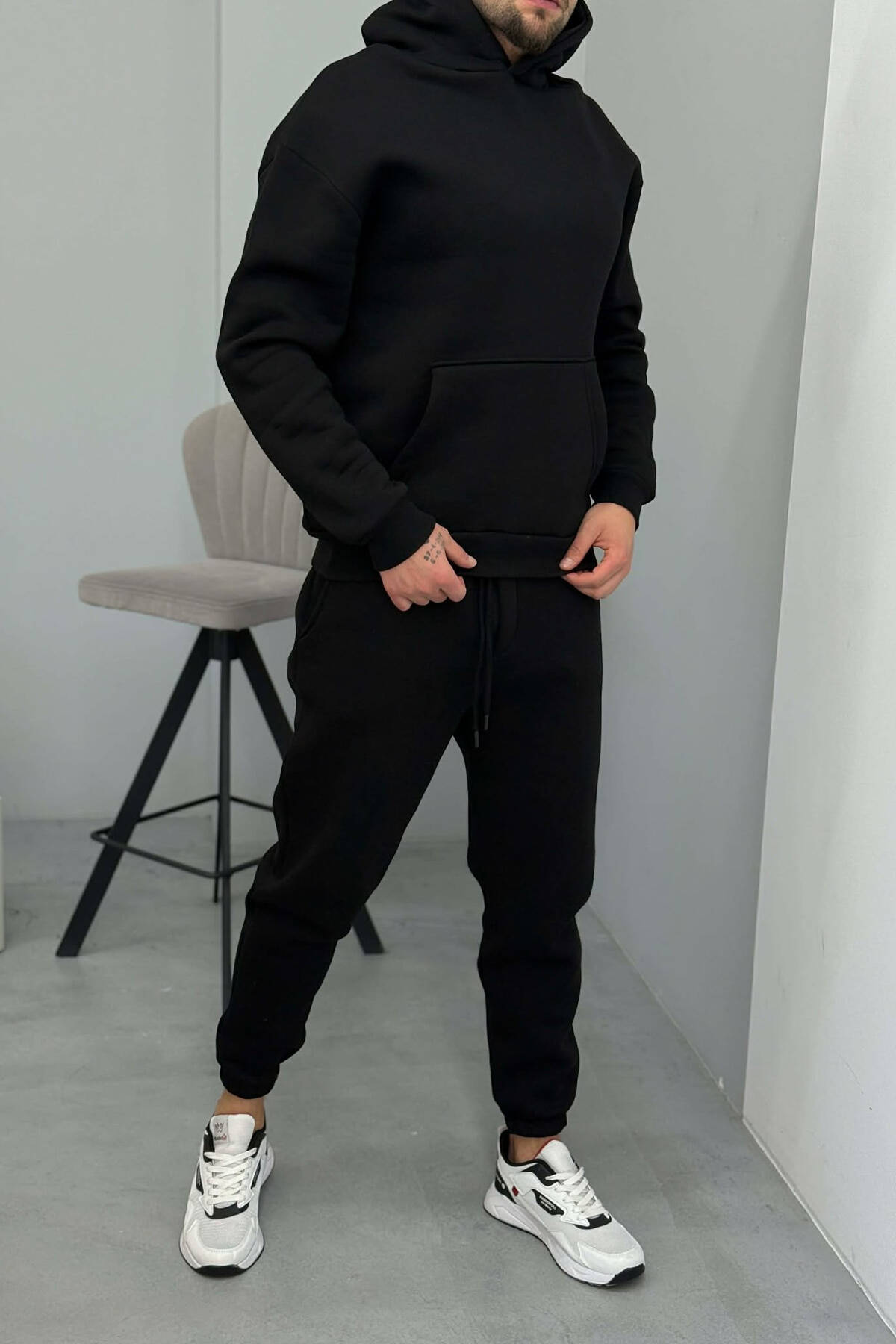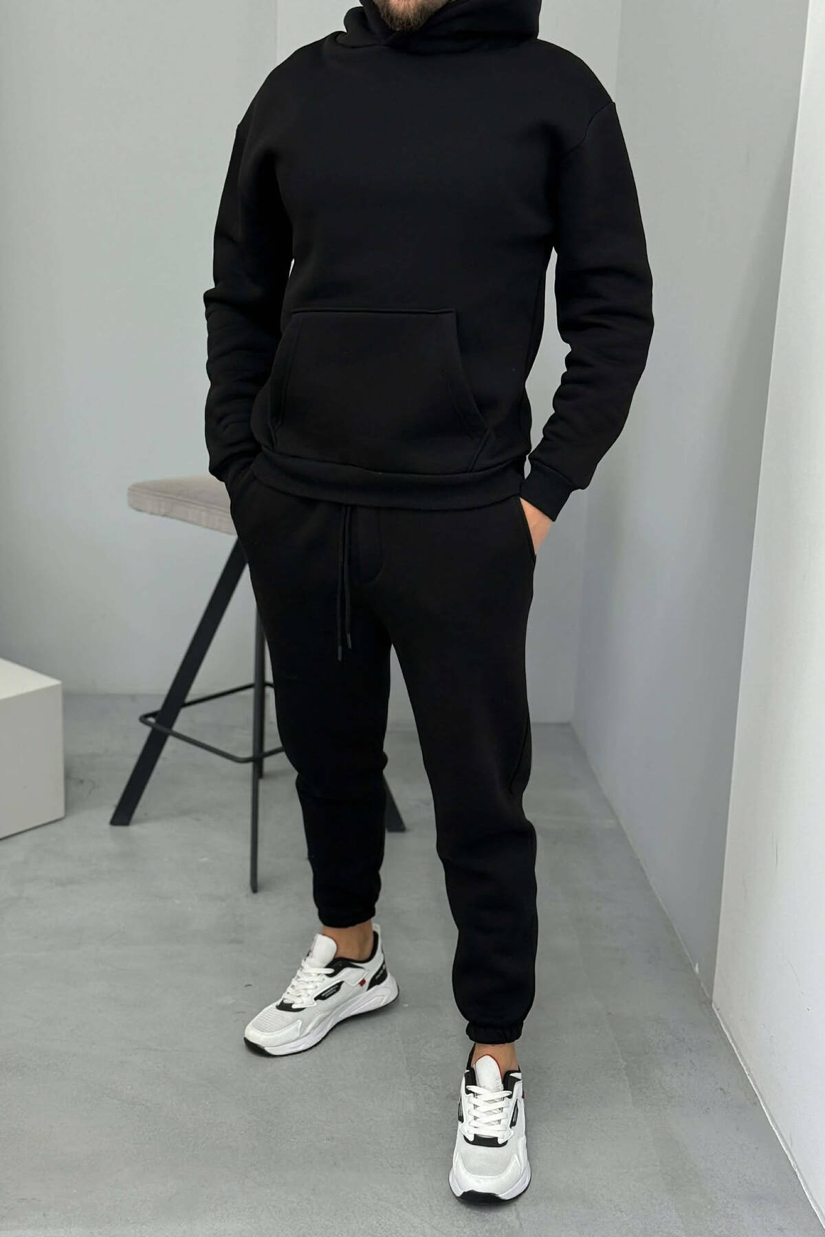 FLUFFY HOODIE+JOGGERS MEN SET IN BLACK COLOR