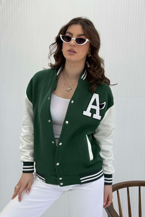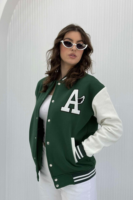 FLUFFY LETTER A FRONT LOGO WOMEN JACKET DARK GREEN/JEE