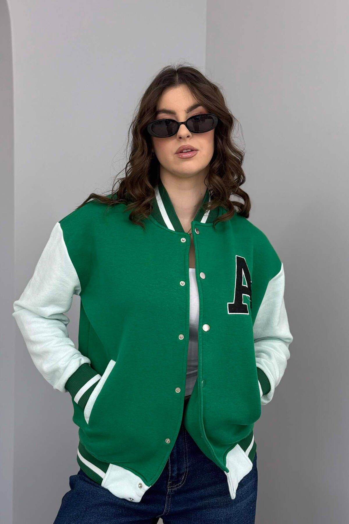 FLUFFY LETTER A FRONT LOGO WOMEN JACKET GREEN/JESHILE