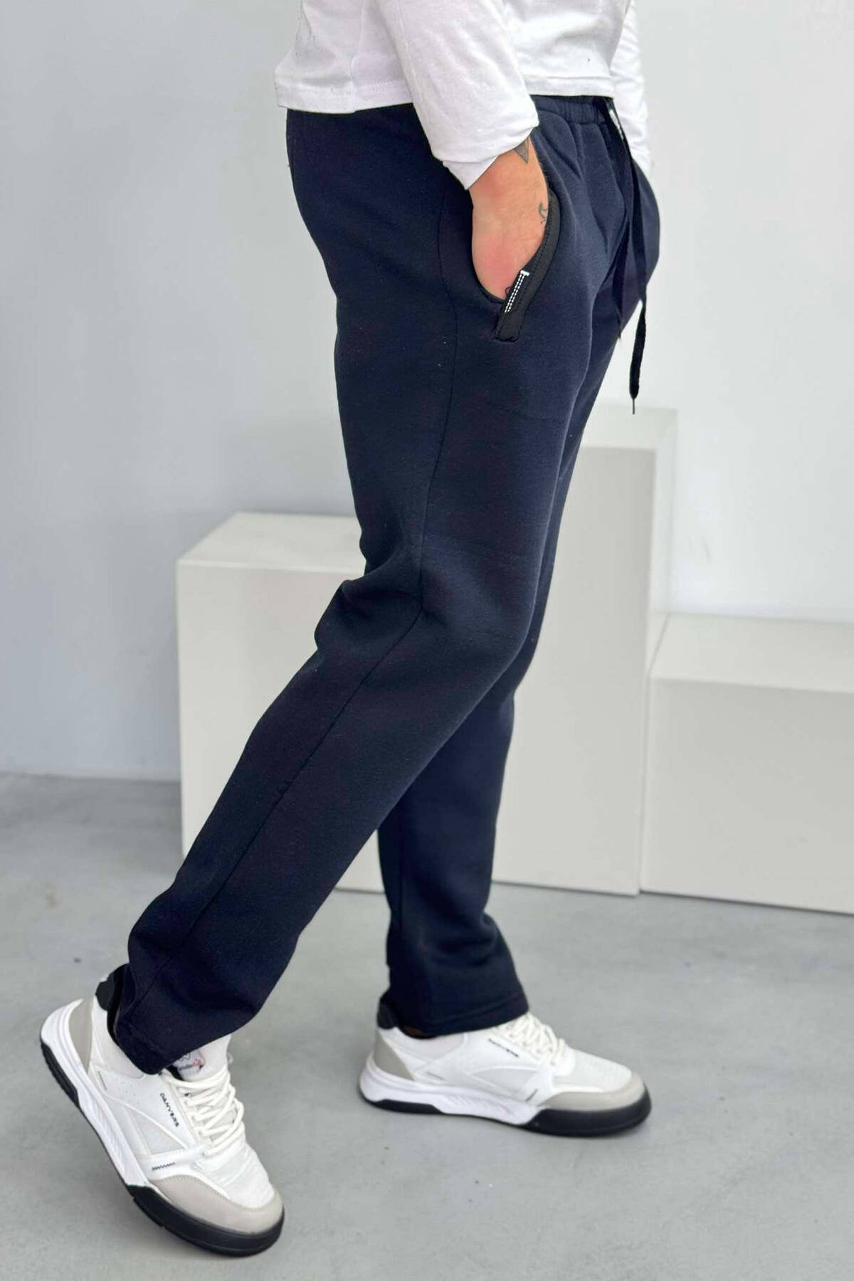 ONE COLOR FLUFFY MEN SWEATPANTS DARK BLUE/BEE