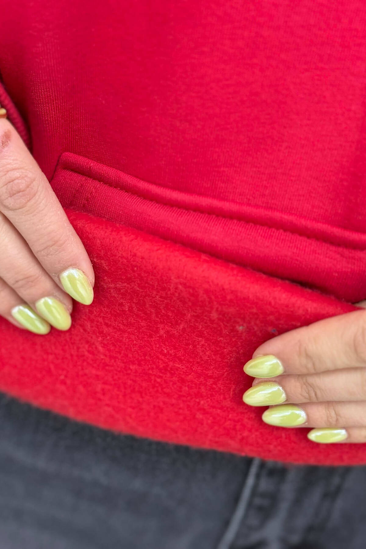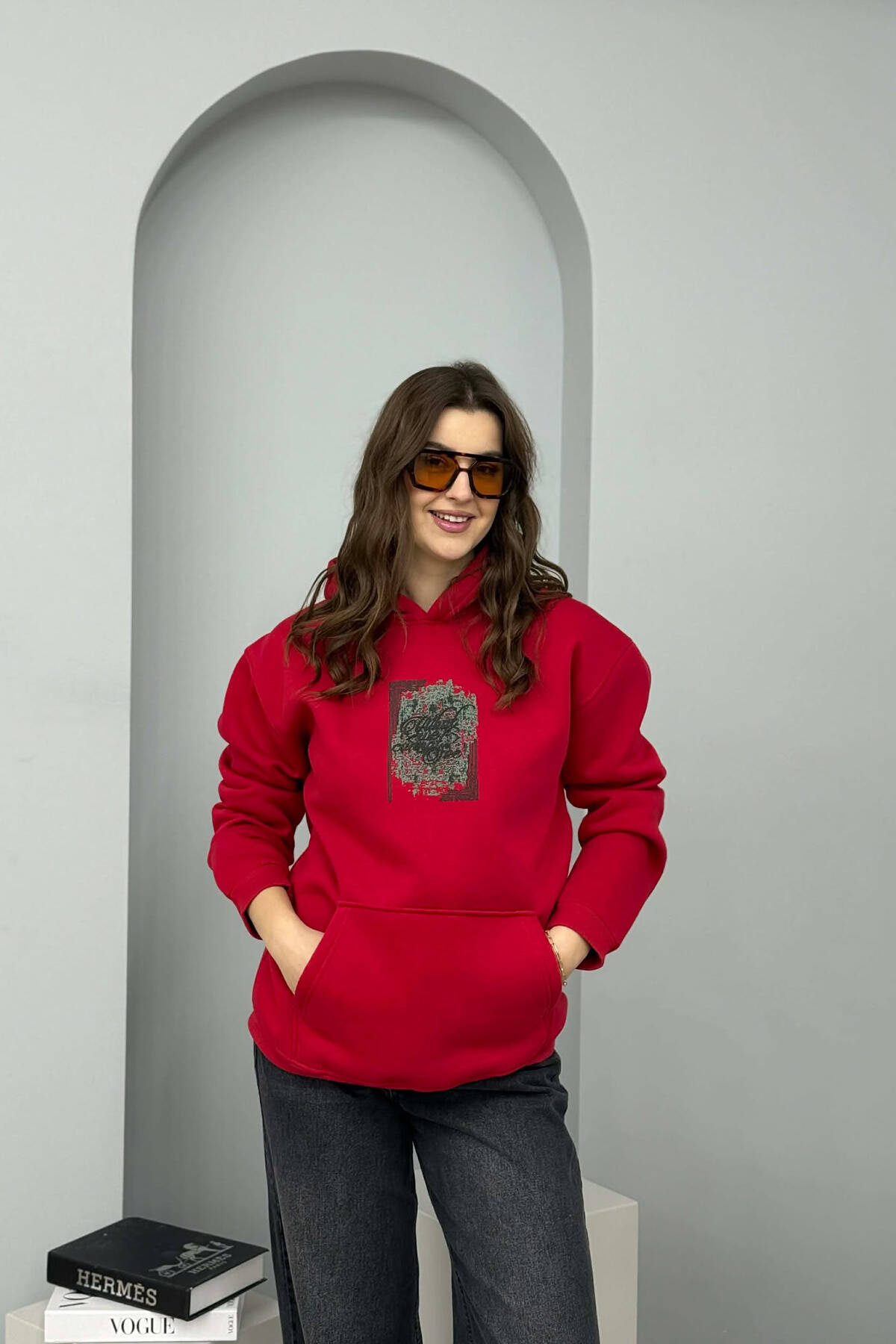 FLUFFY ONE COLOR FRONT & BACK IMAGE WOMEN HOODIE RED/E KUQE