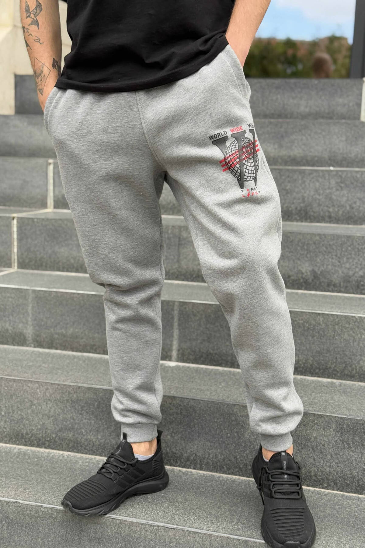 SET PIZHAMESH BLUZË+TUTA DY NGJYRËSHE PËR MESHKUJ NË NGJYRË GRI TË ERRËT