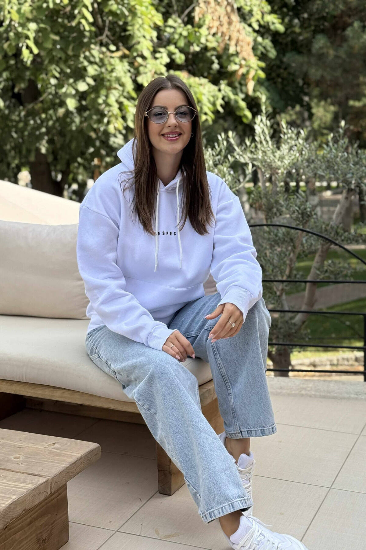 FLUFFY ONE COLOR FRONT SIMPLE WRITTING WOMEN HOODIE WHITE-E BARDHE