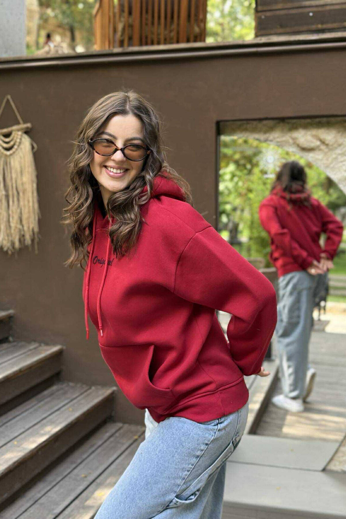 ONE COLOR SIMPLE ZIPPER NECK WOMEN HOODIE BURGUNDY/VISHNJE