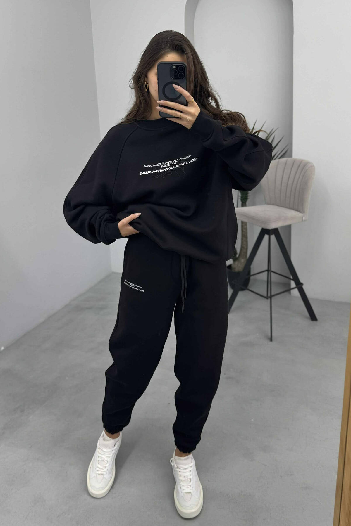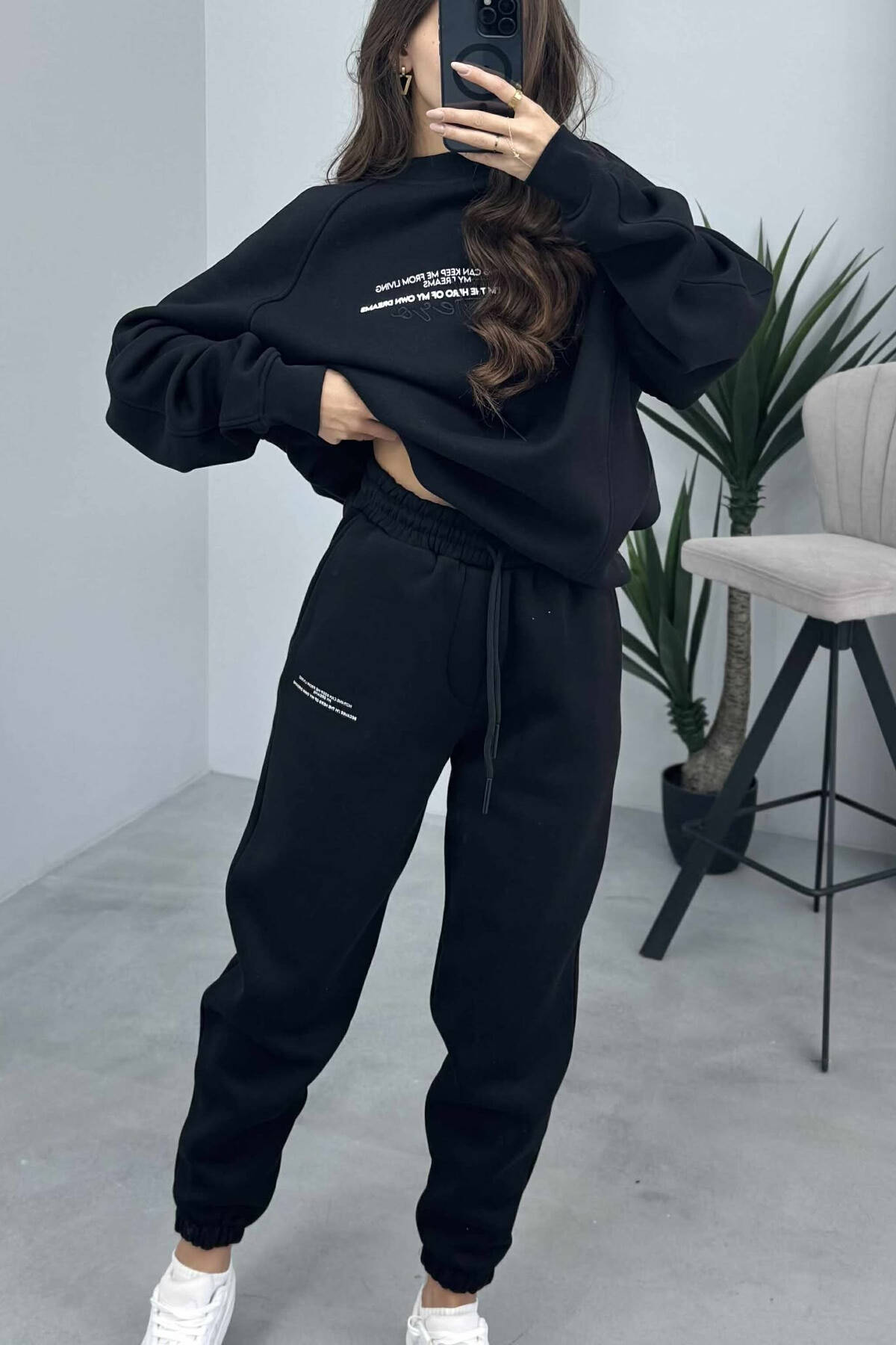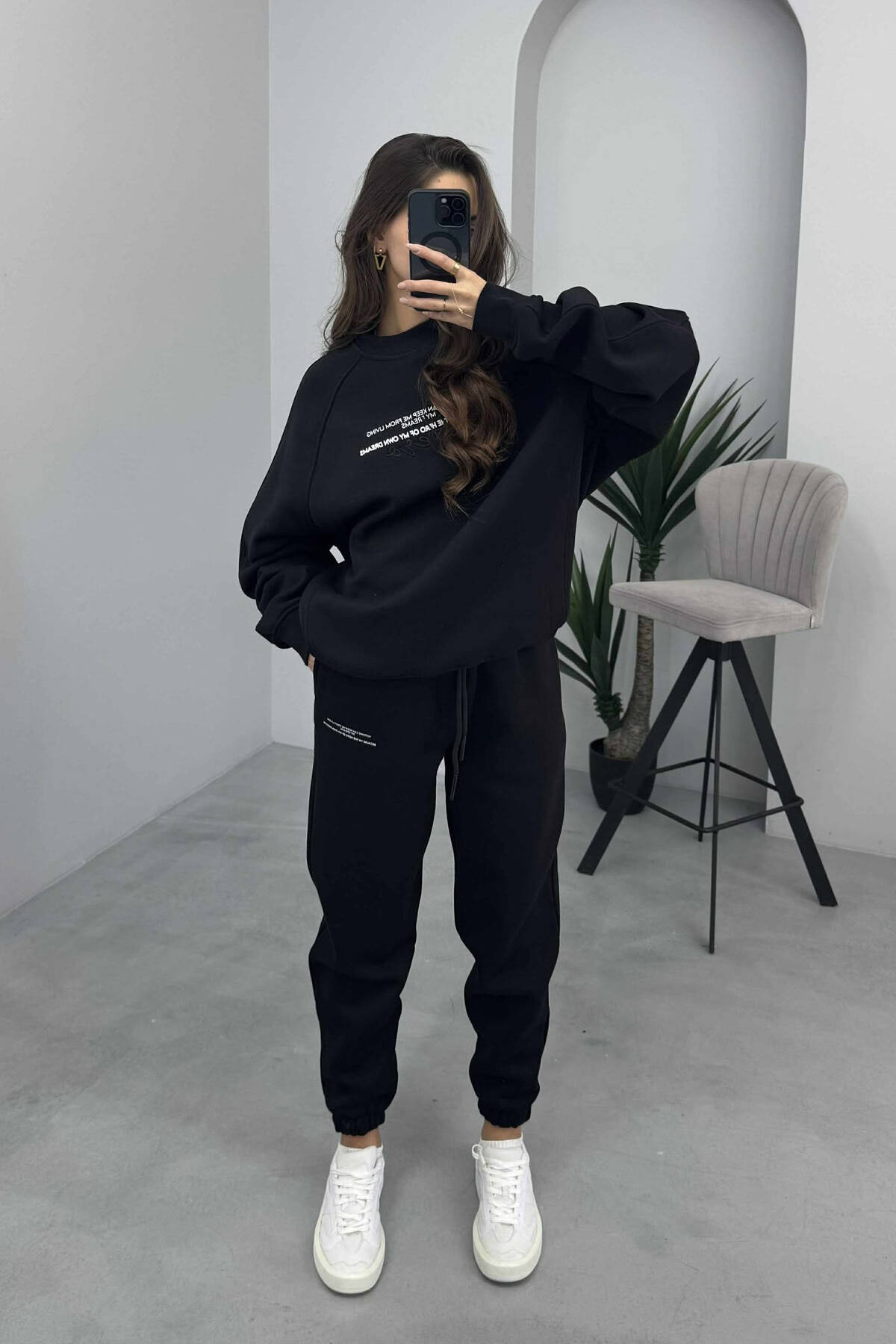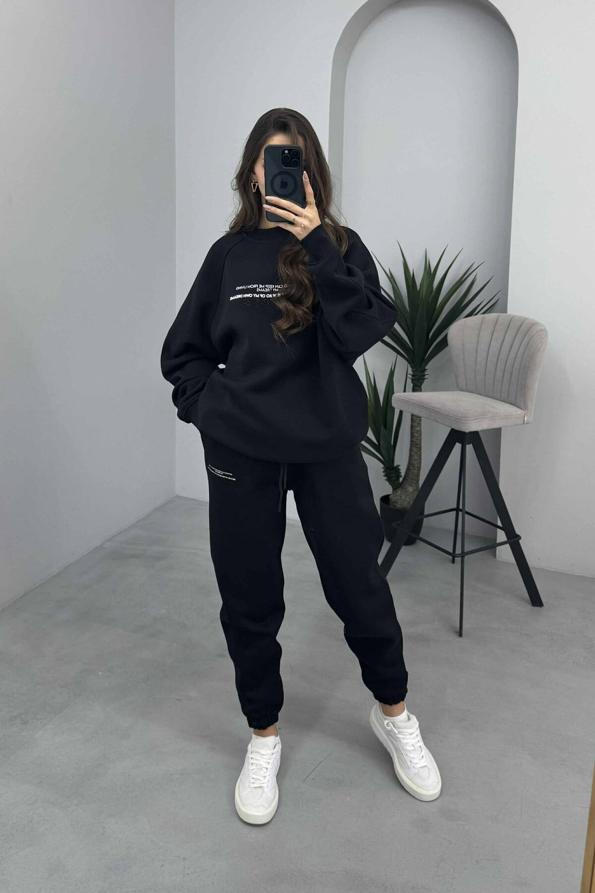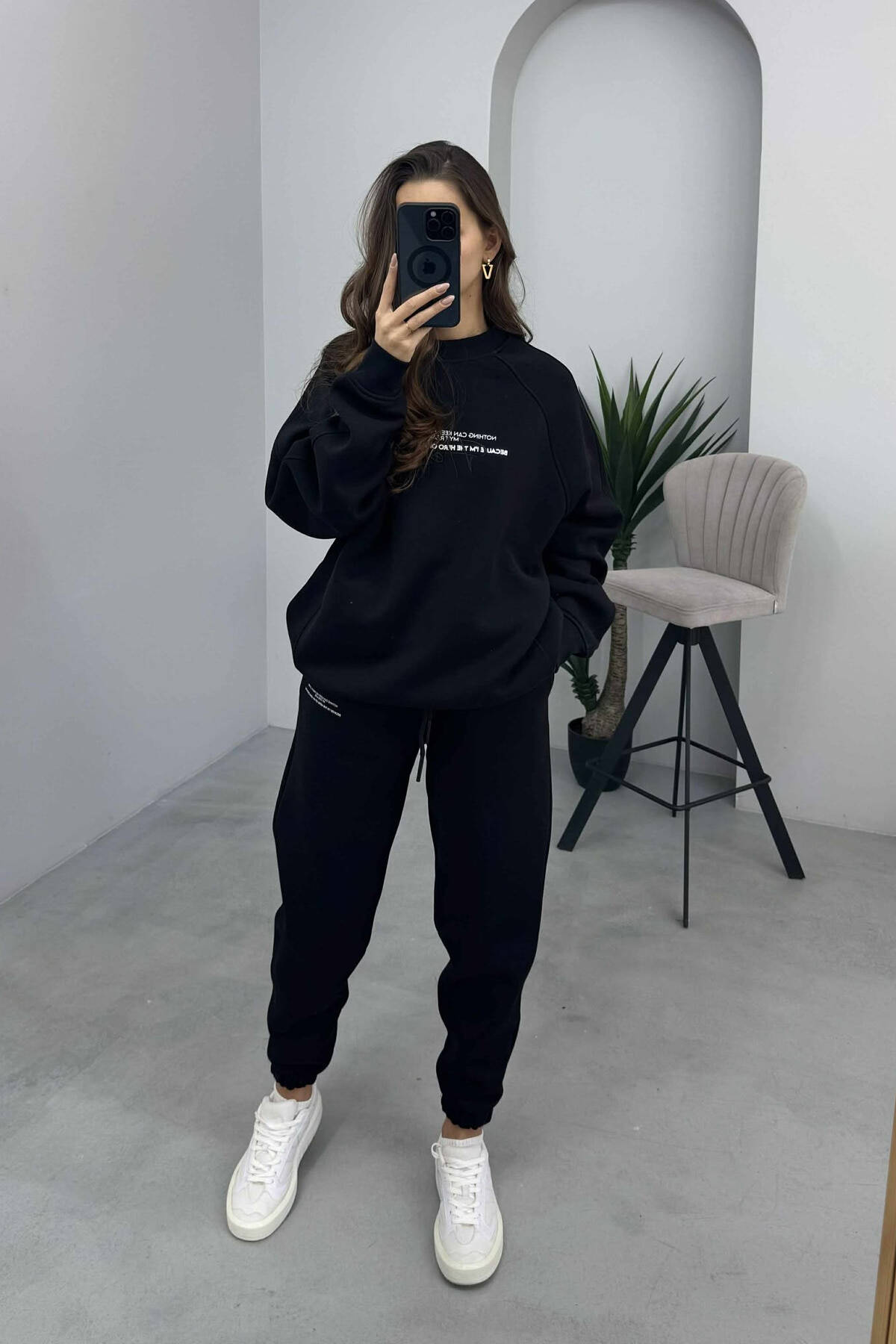 KOSTUM ME PUSH NJËNGJYRËSH BLUZË+TUTA PËR FEMRA NË NGJYRËN E ZEZË