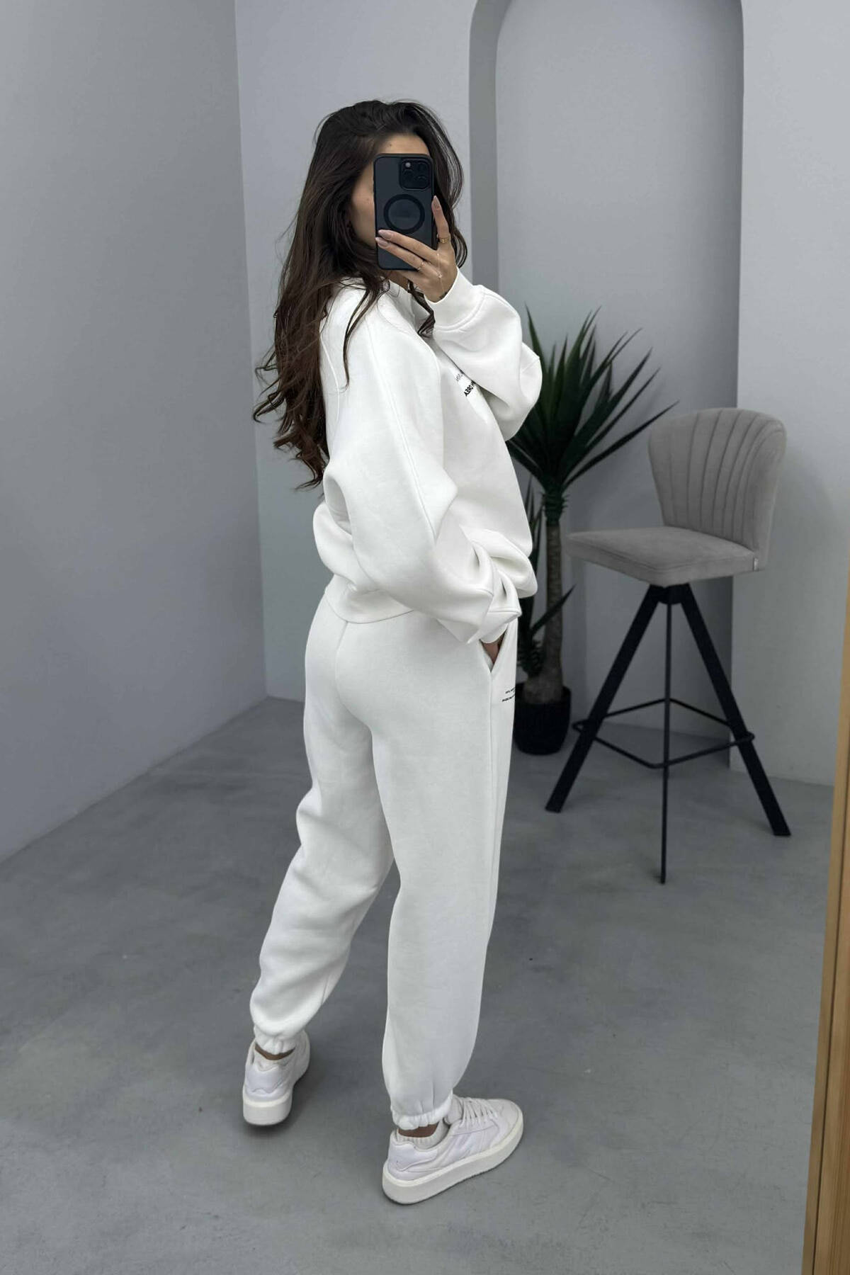 FLUFFY ONE COLOR SWEATSHIRT+ JOGGERS WOMEN SET WHITE-E BARDHE