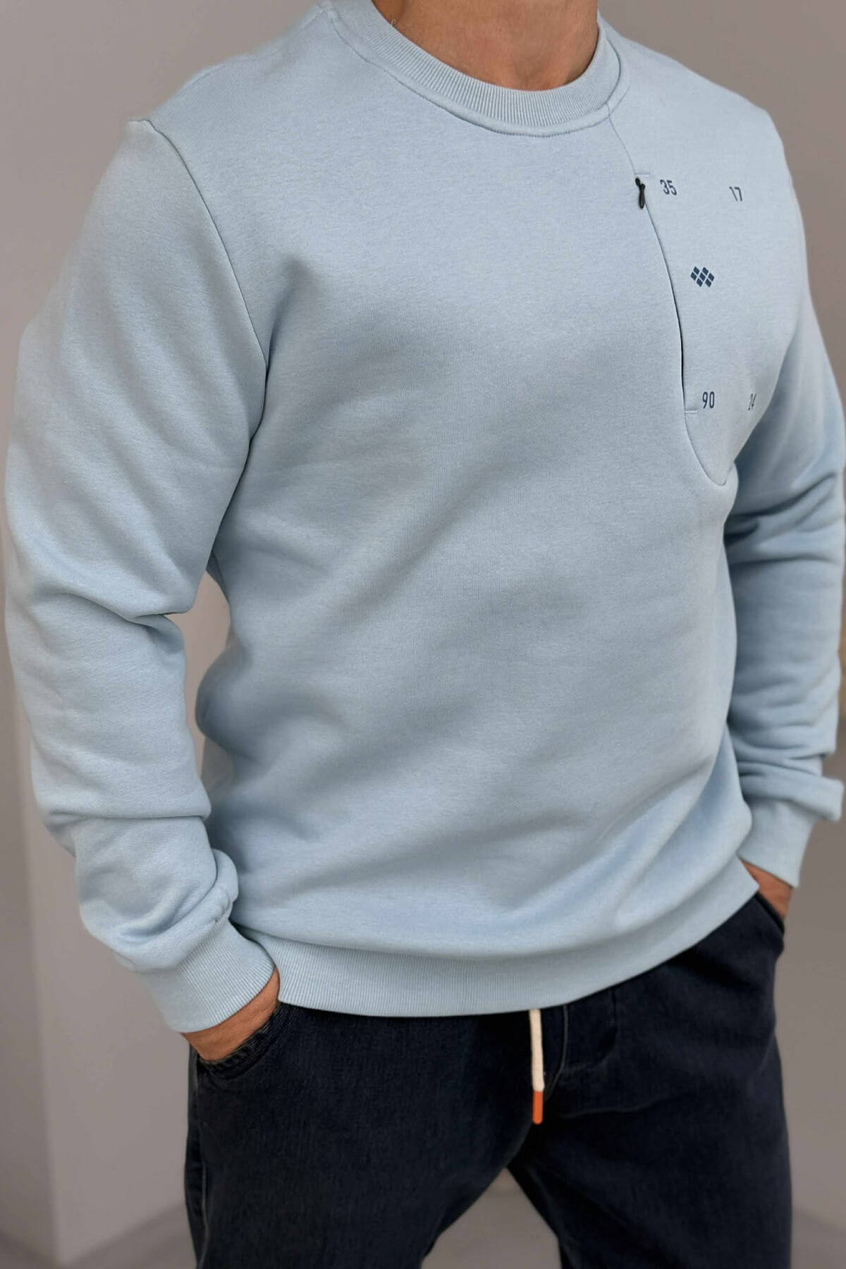 FLUFFY ROUND NECK ONE COLOR MEN SWEATSHIRT LIGHTBLUE/BZ