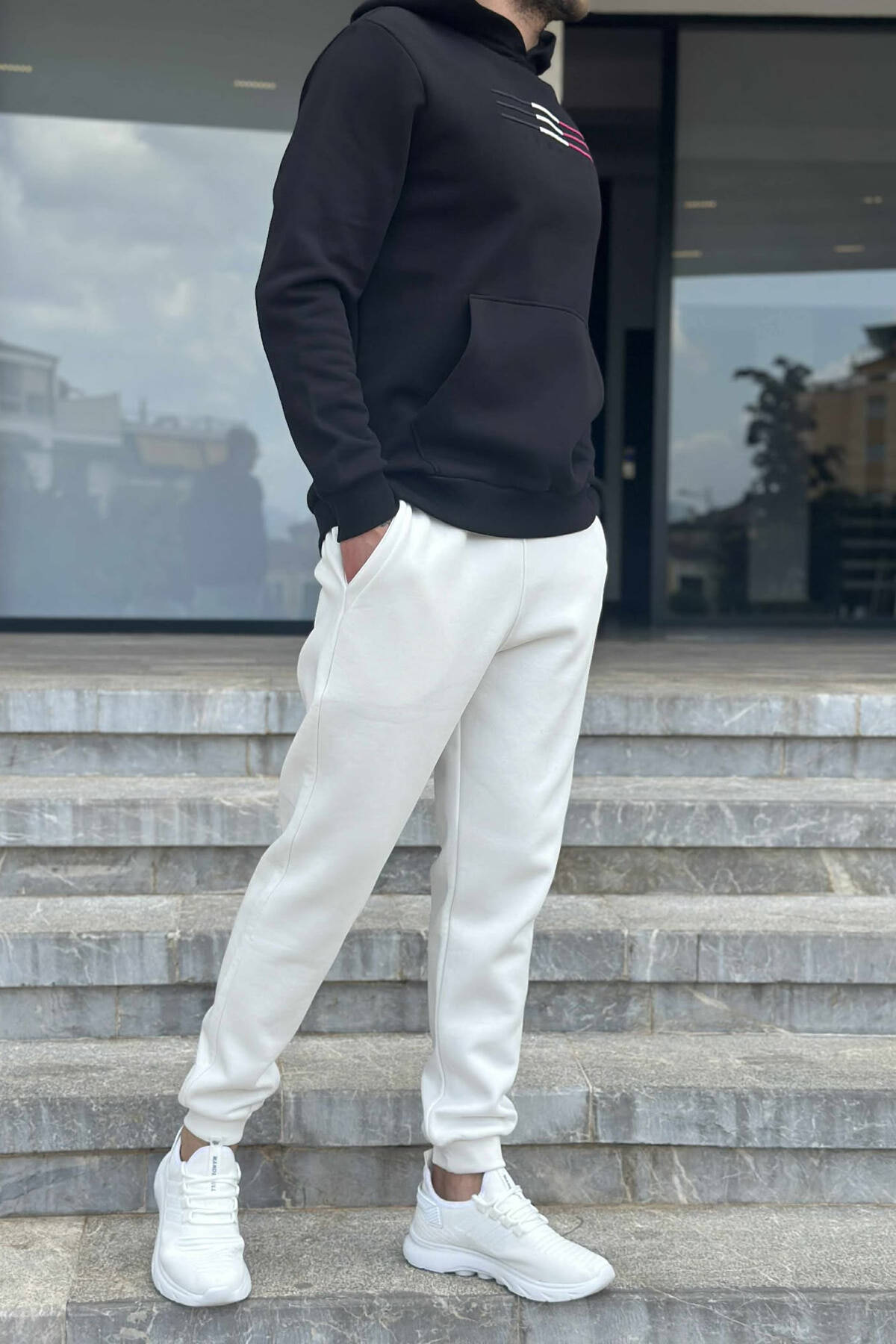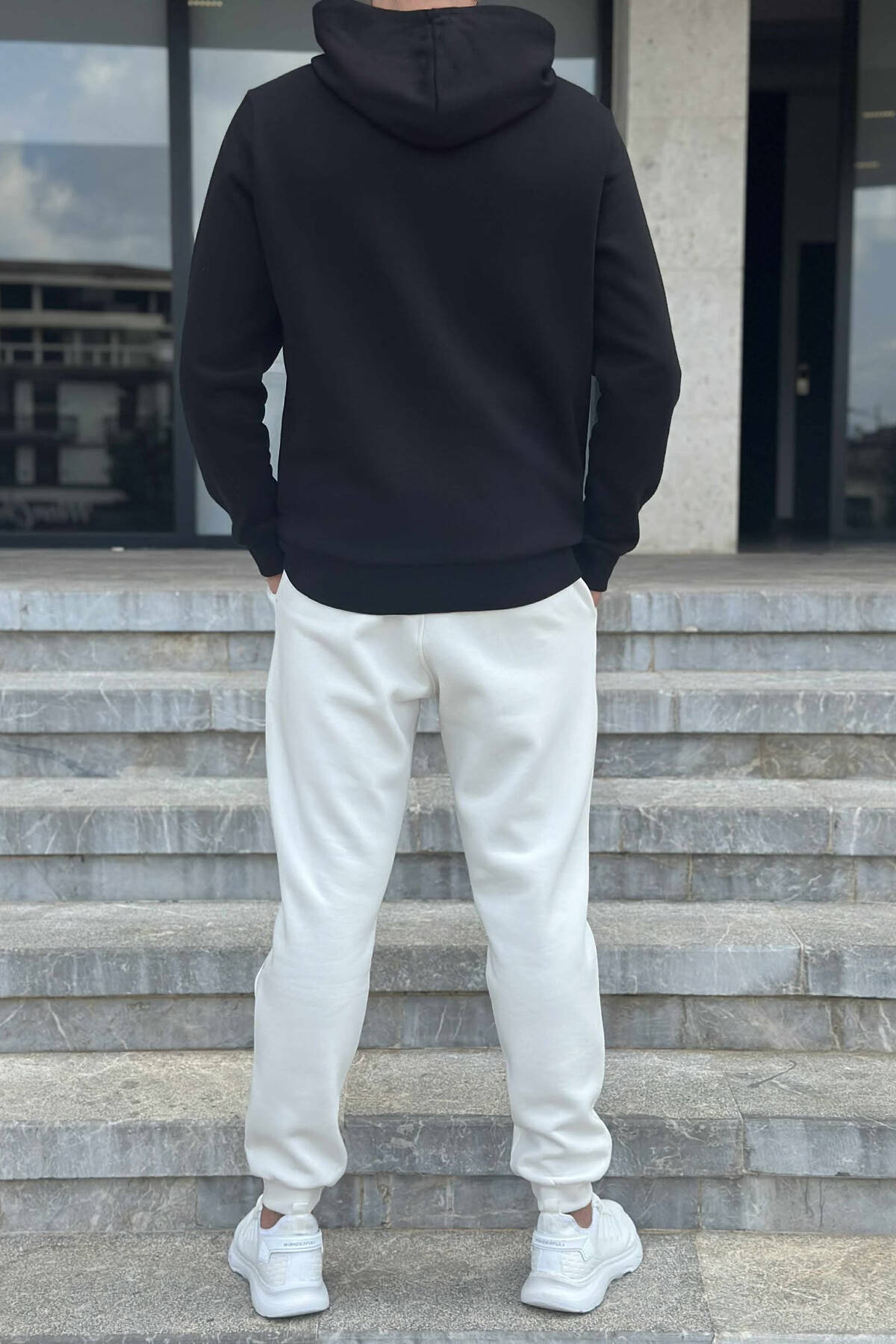 FLUFFY SIMPLE HOODIE+JOGGERS MEN SET BLACK-WHITE/ZEBA