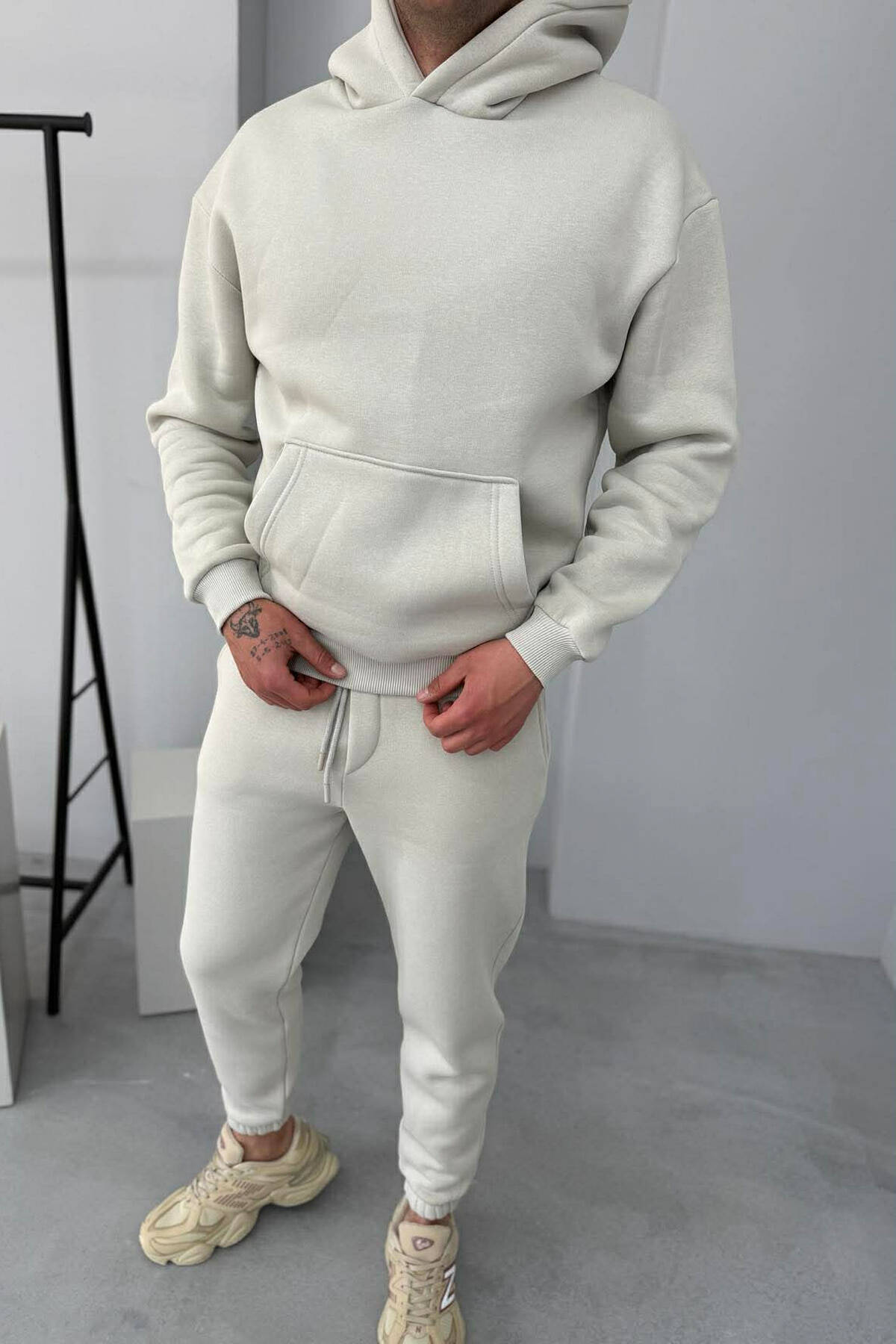 FLUFFY SIMPLE ONE COLOR HOODIE+JOGGER MEN SET BRIGHT GREY/GRI E SHNDRITSHME
