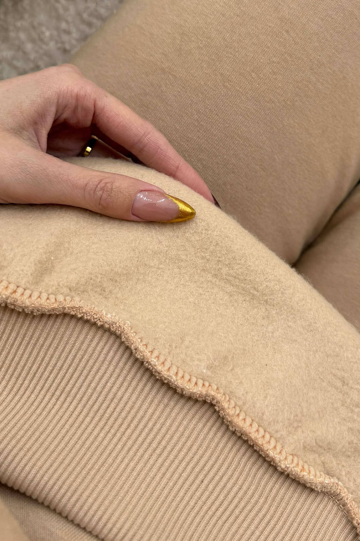 FLUFFY SIMPLE ONE COLOR HOODIE+JOGGERS WOMEN SET BEIGE/BEZHE
