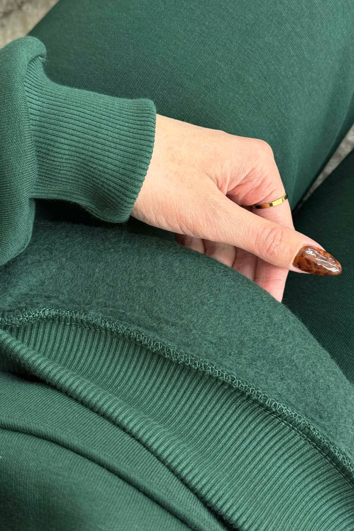 FLUFFY SIMPLE ONE COLOR HOODIE+JOGGERS WOMEN SET DARK GREEN/JEE