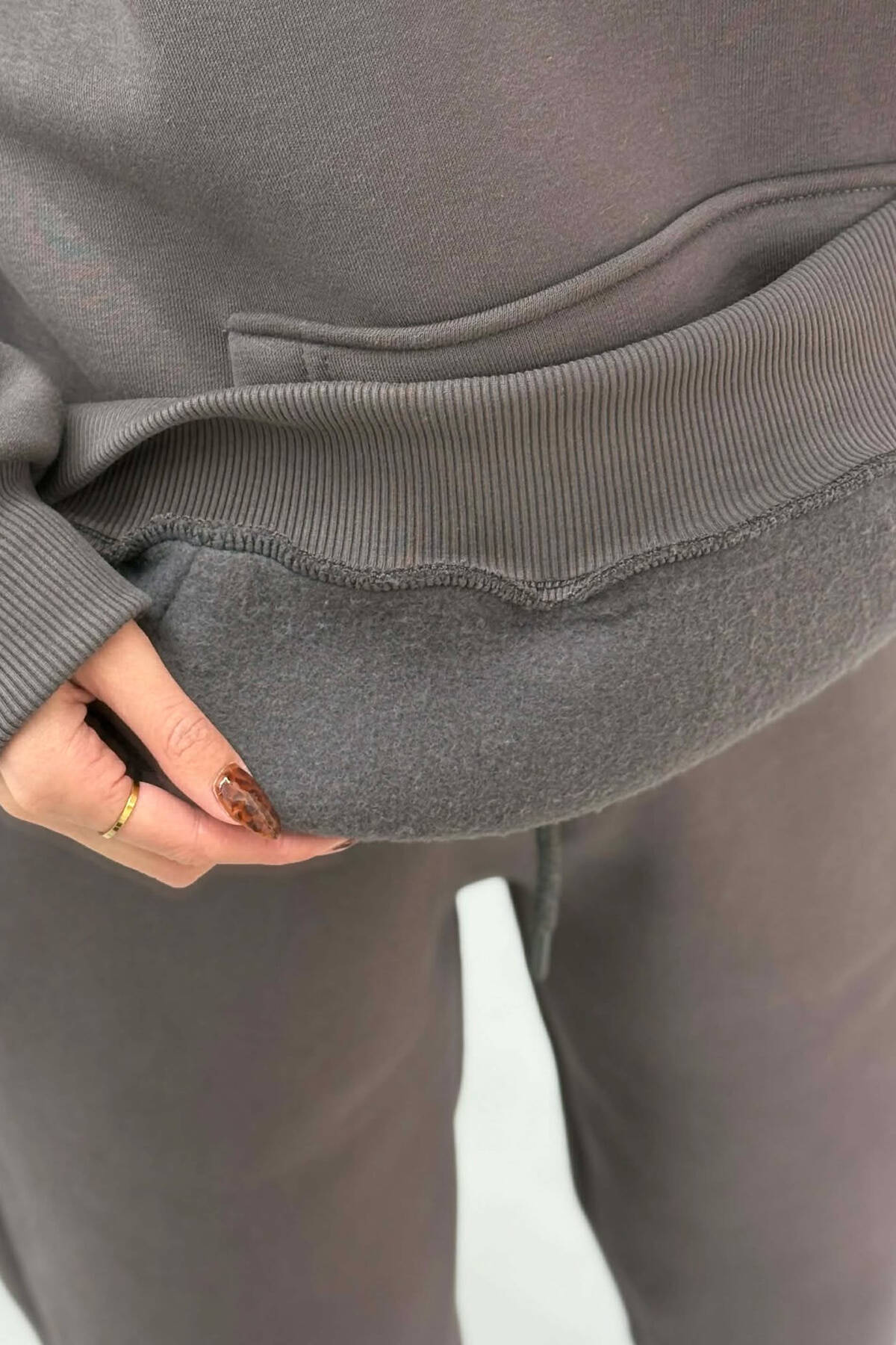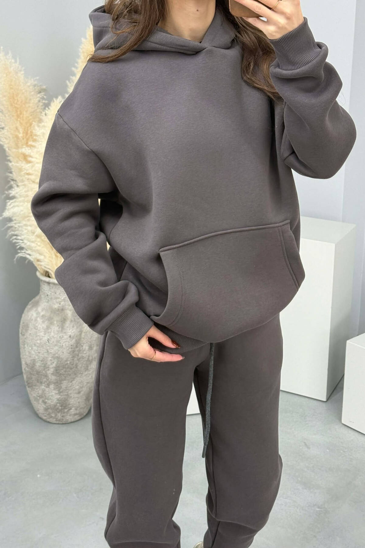 FLUFFY SIMPLE ONE COLOR HOODIE+JOGGERS WOMEN SET DARK GREY/GEE