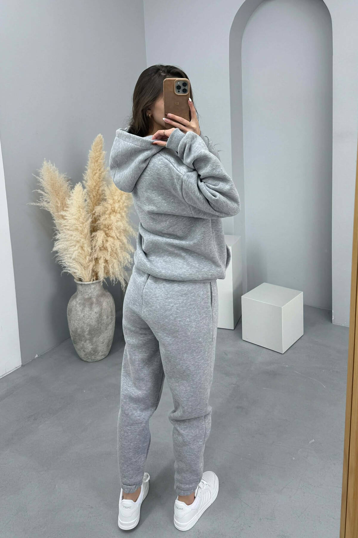 FLUFFY SIMPLE ONE COLOR HOODIE+JOGGERS WOMEN SET LIGHT GREY/GZ