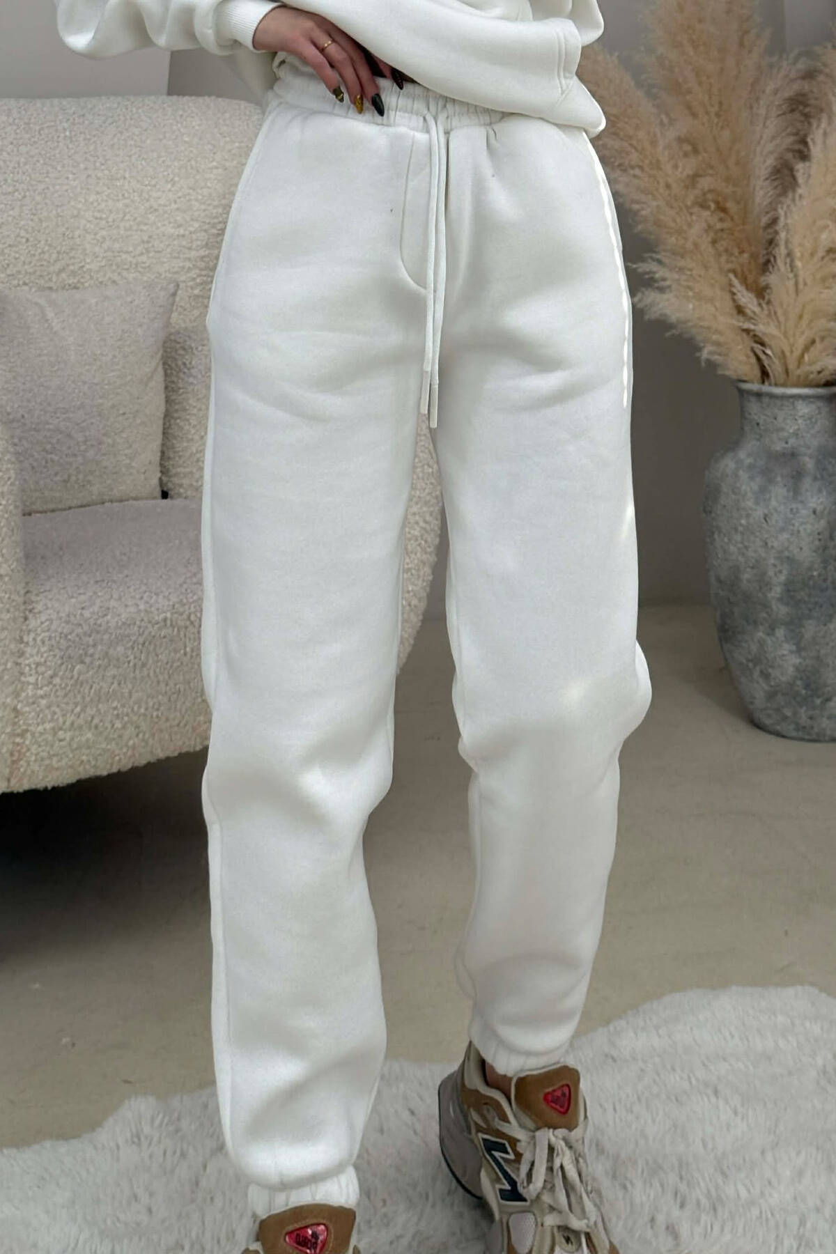 FLUFFY SIMPLE ONE COLOR HOODIE+JOGGERS WOMEN SET WHITE-E BARDHE