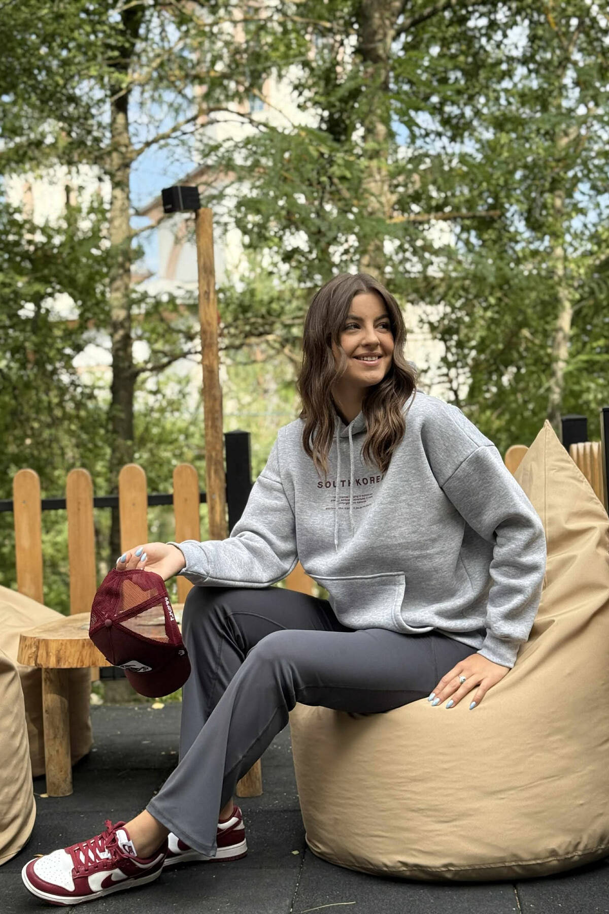 FLUFFY SIMPLE ONE COLOR WOMEN HOODIE DARK GREY/GEE