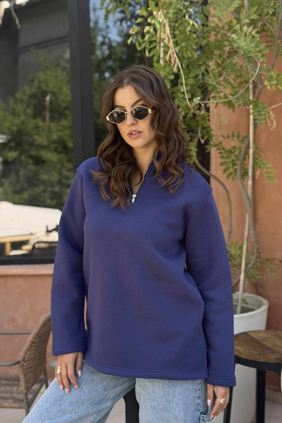 FLUFFY ZIPPER NECK ONE COLOR WOMEN SWEATSHIRT DARK PURPLE/LEJLA ERRET