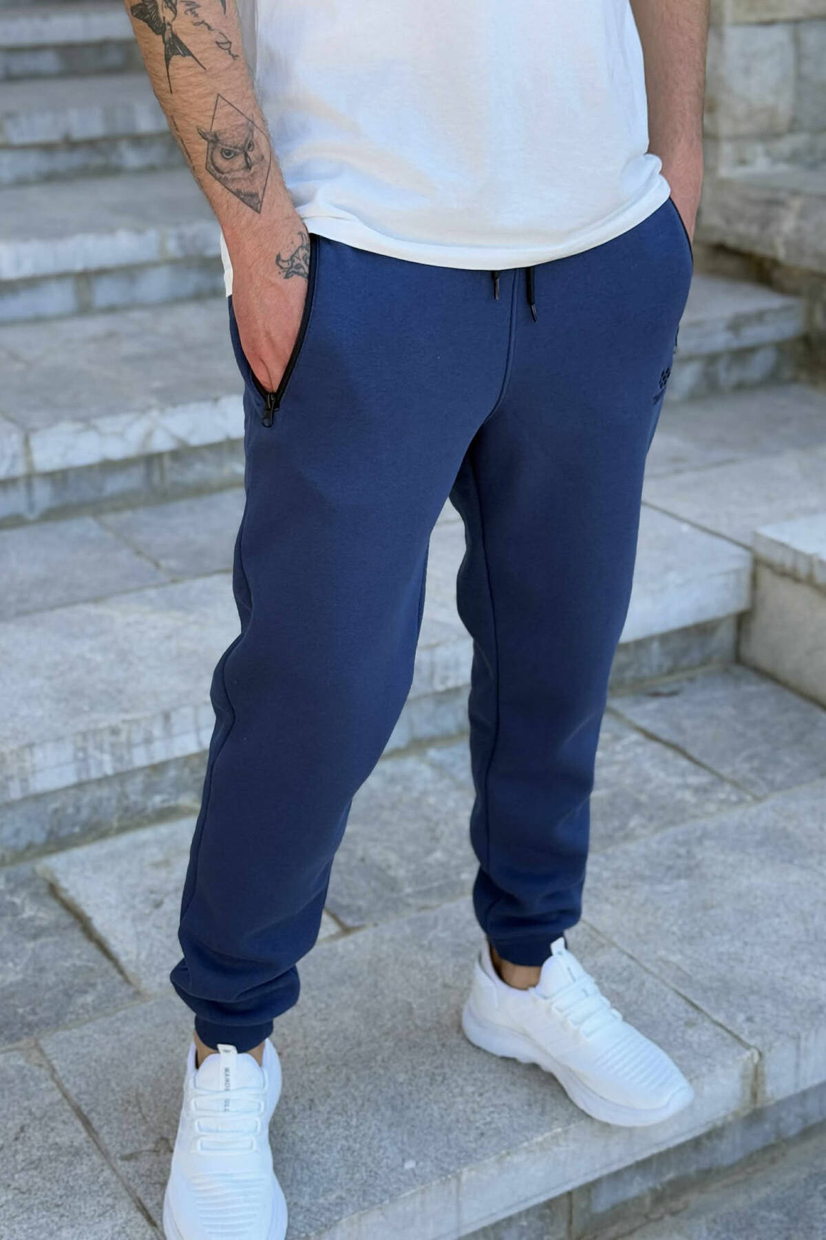 FLUFFY ZIPPER POCKETS MEN JOGGERS BLUE/BLU