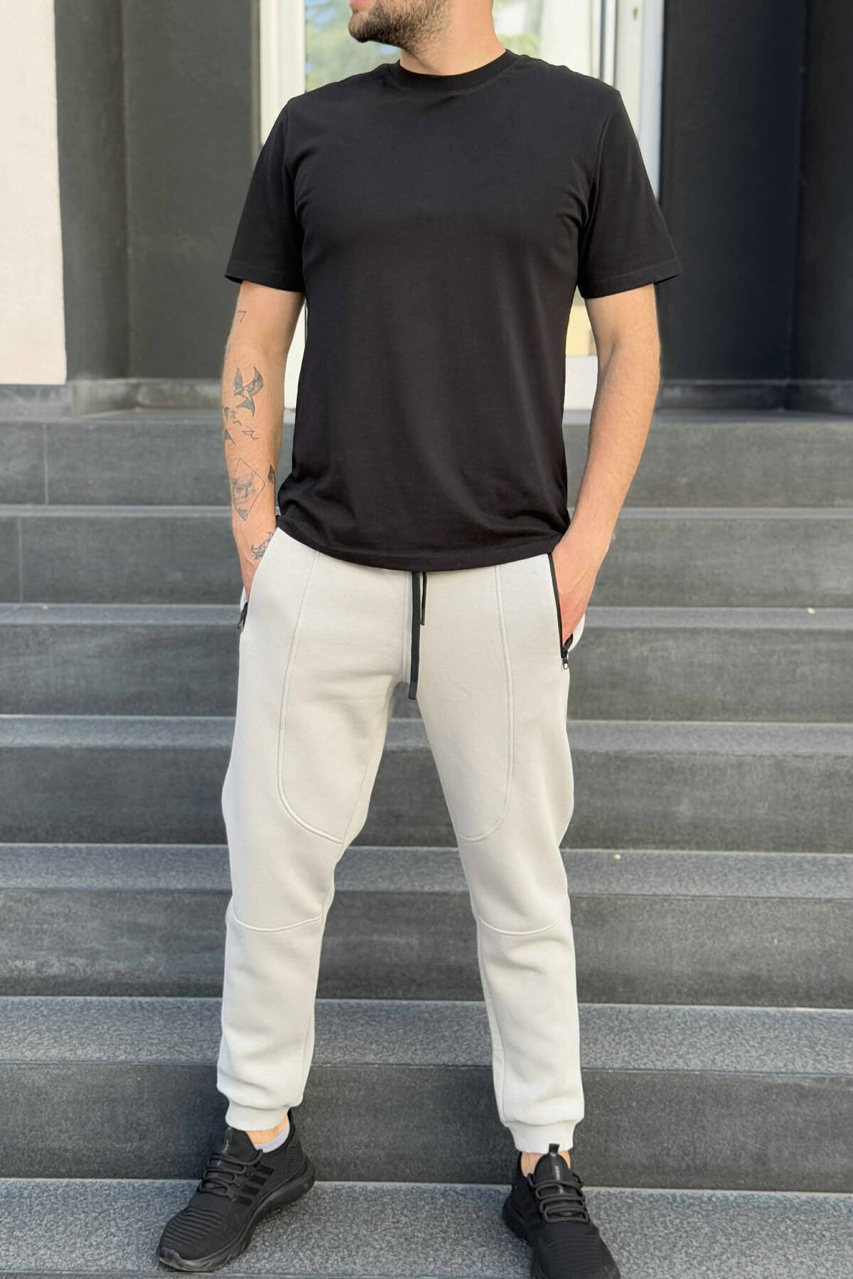 TUTA NJË NGJYRËSHE ME PUSH PËR MESHKUJ NË NGJYRËN GRI E ZBARDHUR