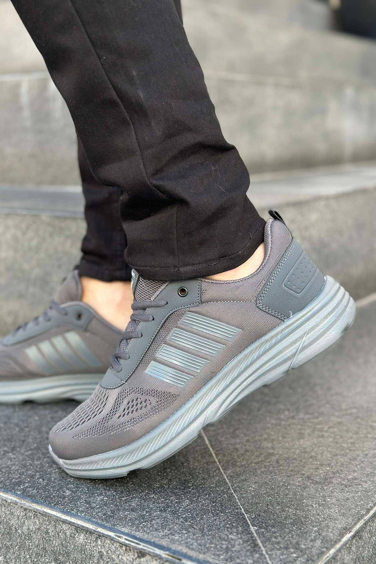 SIMPLE ONE COLOR LACING MEN SNEAKERS DARK GREY/GEE