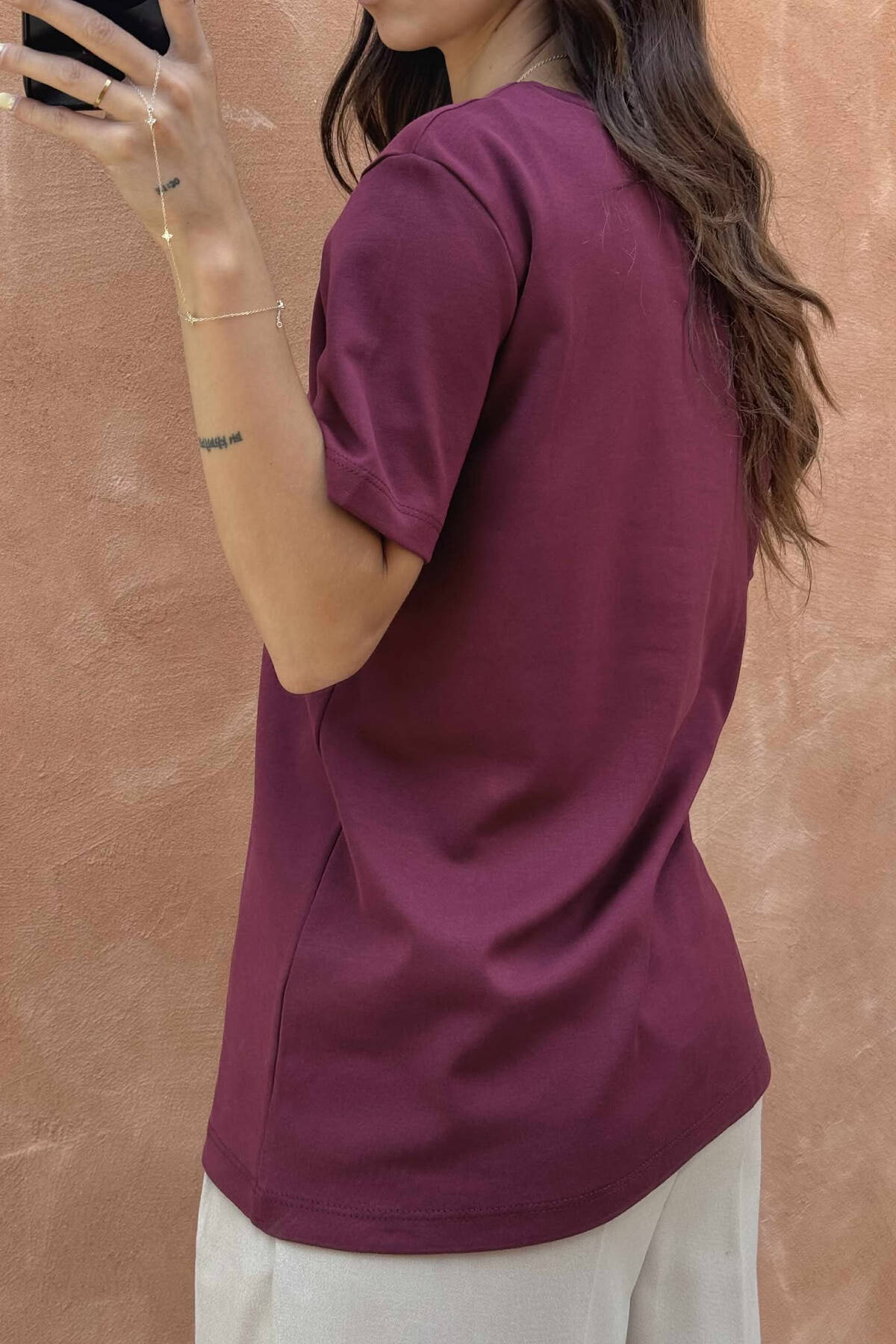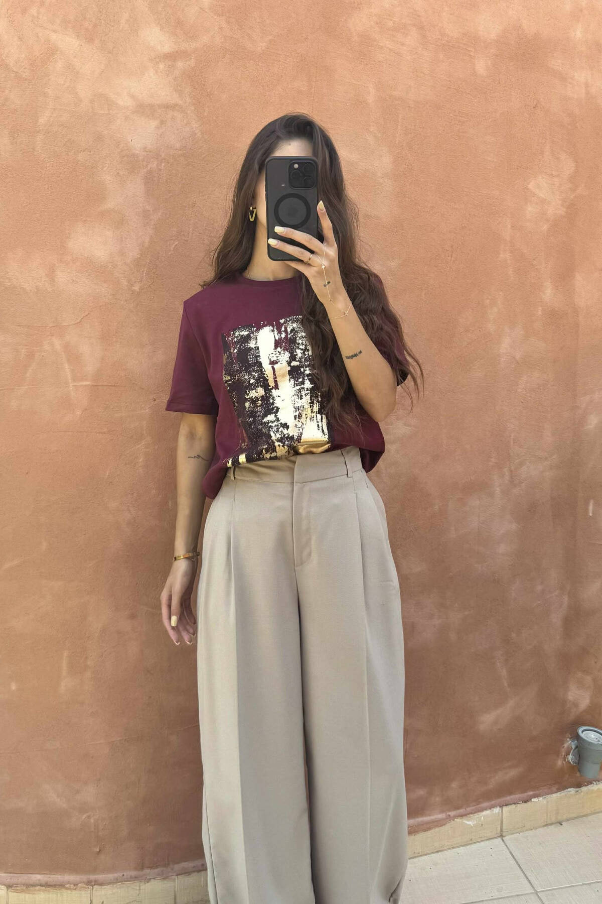 T-SHIRT ME IMAZHE ABSTRAKTE PËR FEMRA NË NGJYRËN VISHNJË