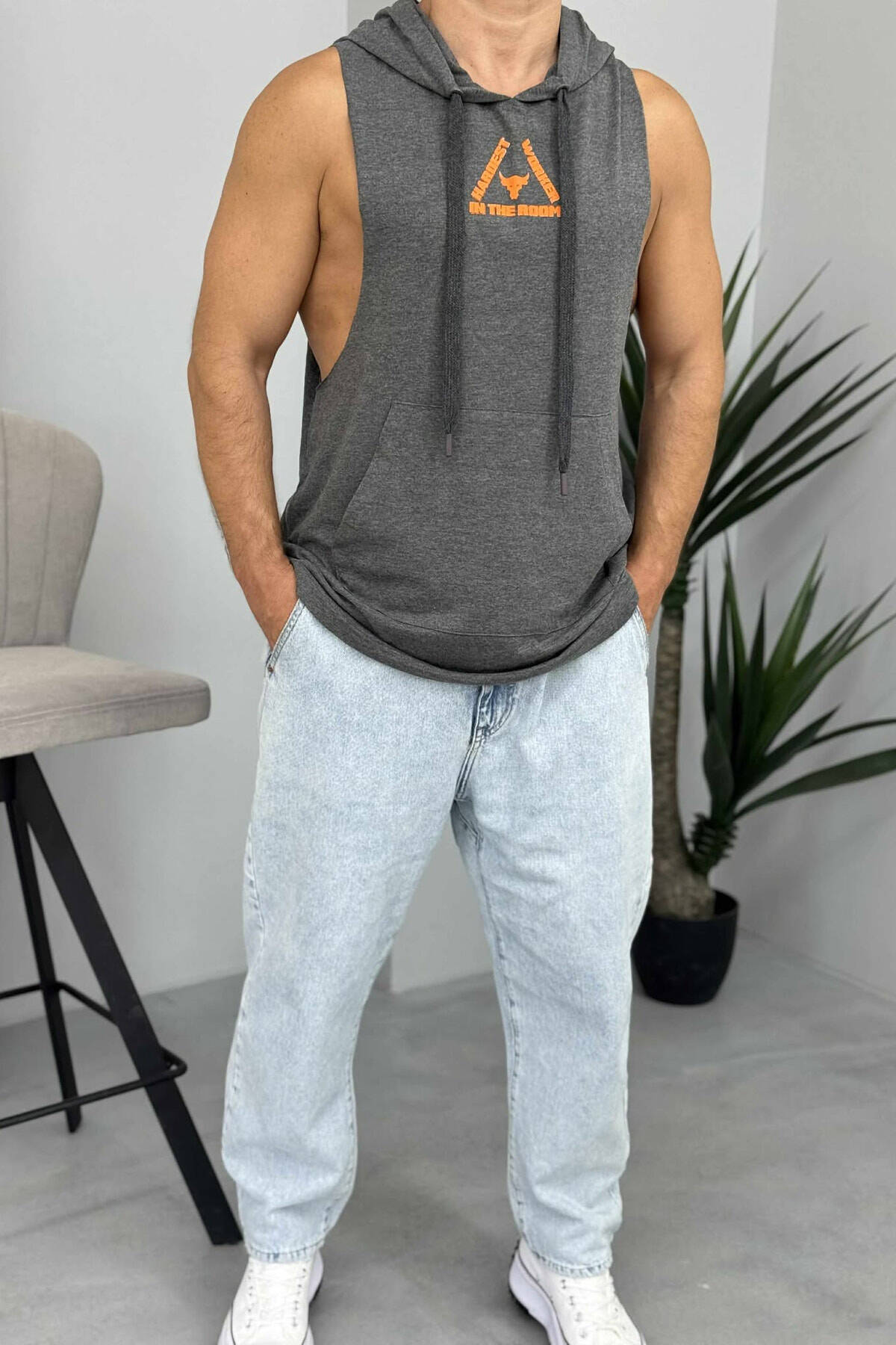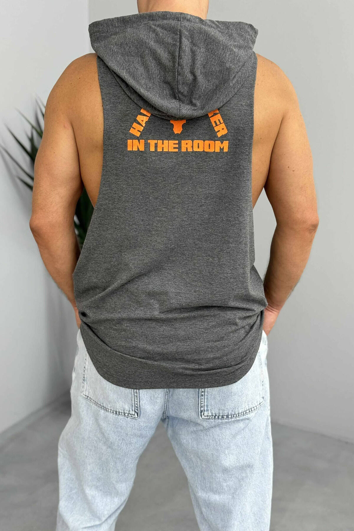 FRONT & BACK DESIGN HOODED MEN TANK TOP DARK GREY/GEE