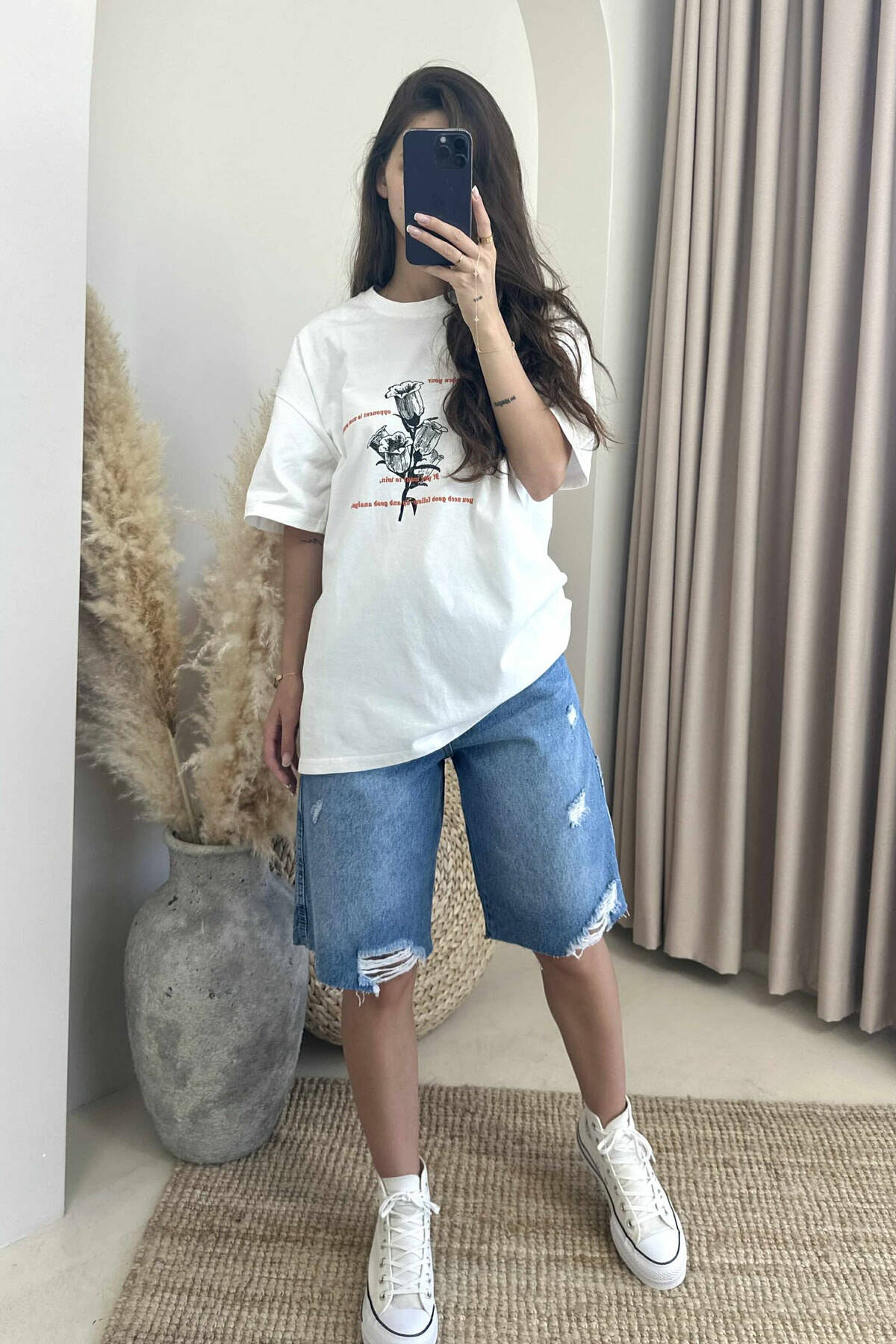 FRONT & BACK DESIGNED WRITTINGS WOMEN T-SHIRTS CREAM/KREM
