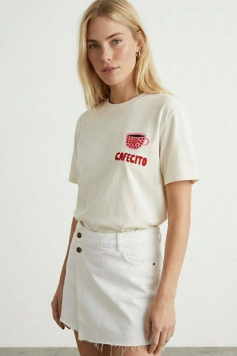 FRONT IMAGE ONE COLOR WOMAN T-SHIRT CREAM/KREM