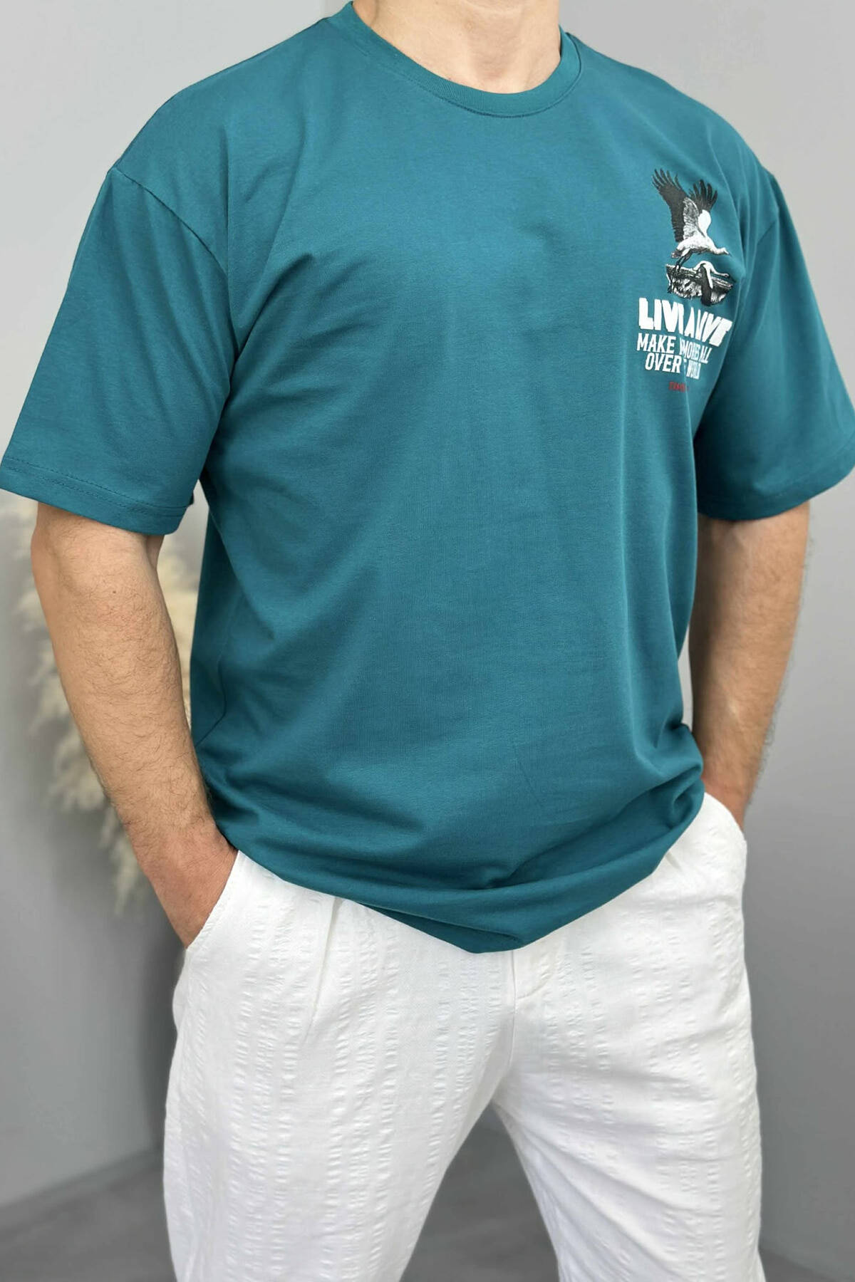 T-SHIRT I THJESHTË ME SHKRIME PËR MESHKUJ NË NGJYRËN JESHILE