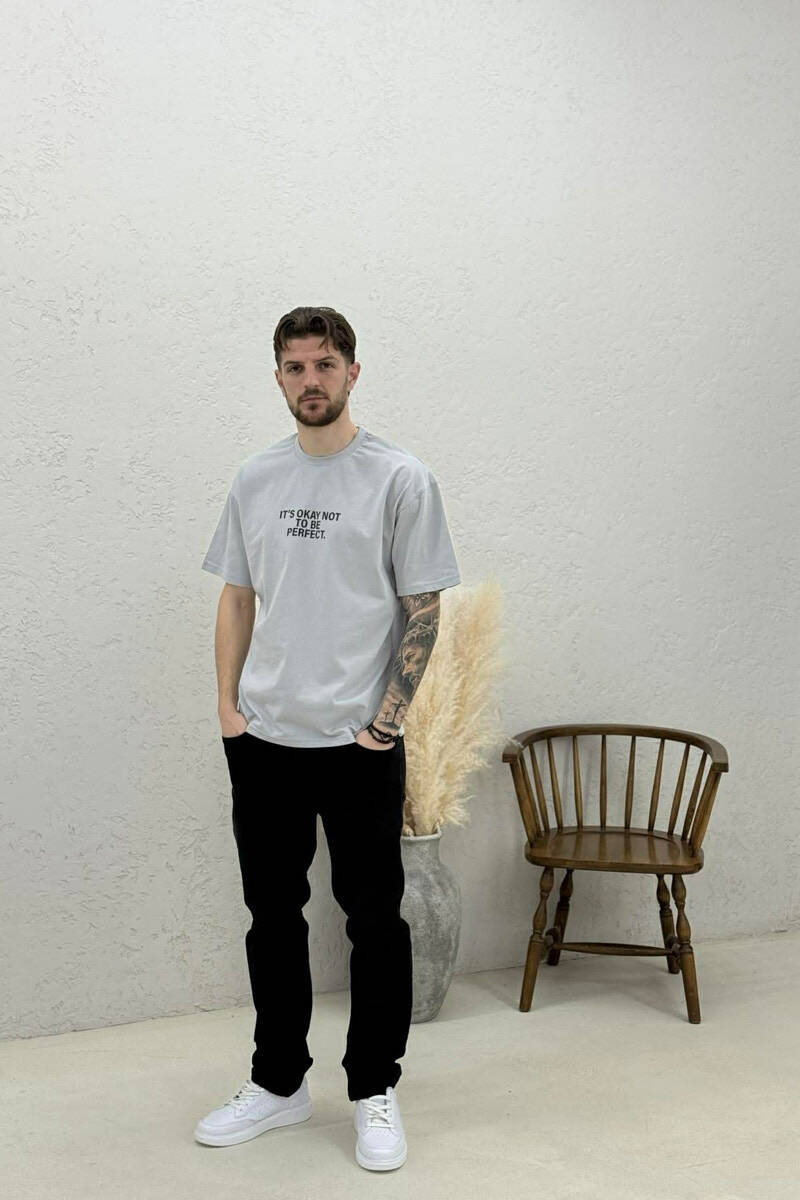 FRONT & BACK WRITTINGS MEN T-SHIRT GREY/GRI