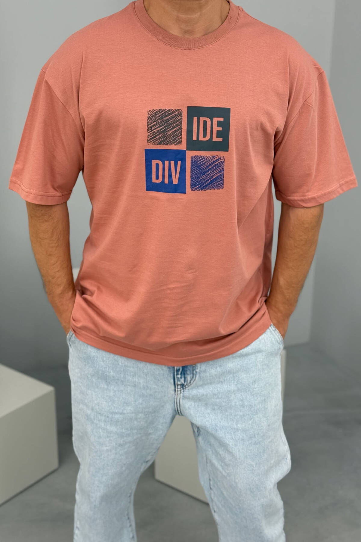 FRONT & BACK WRITTINGS MEN T-SHIRT POWDER/PUDER