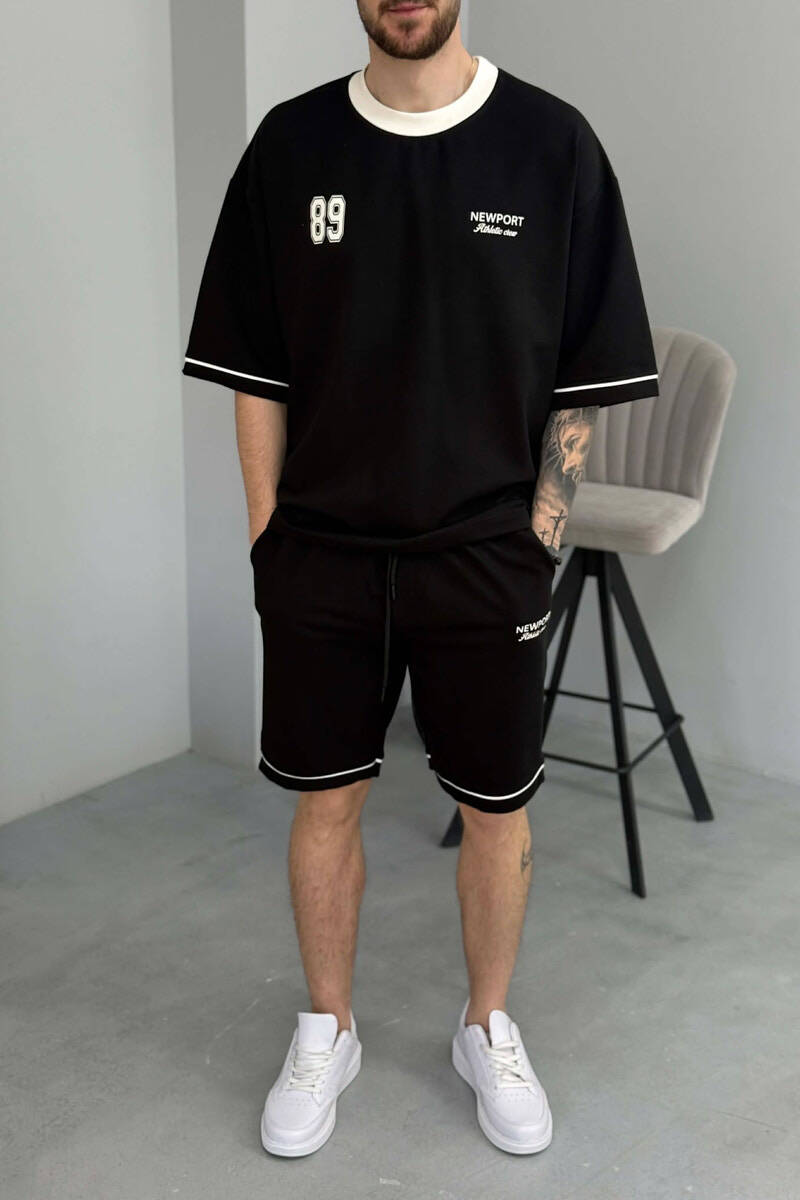 FRONT & BACK WRITTINGS T-SHIRT + SHORTS MEN SET BLACK/ E ZEZE
