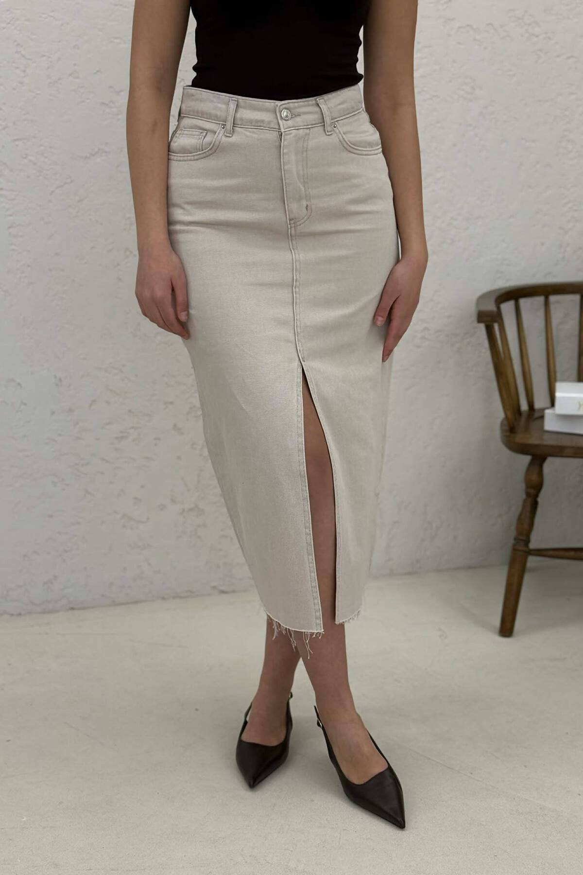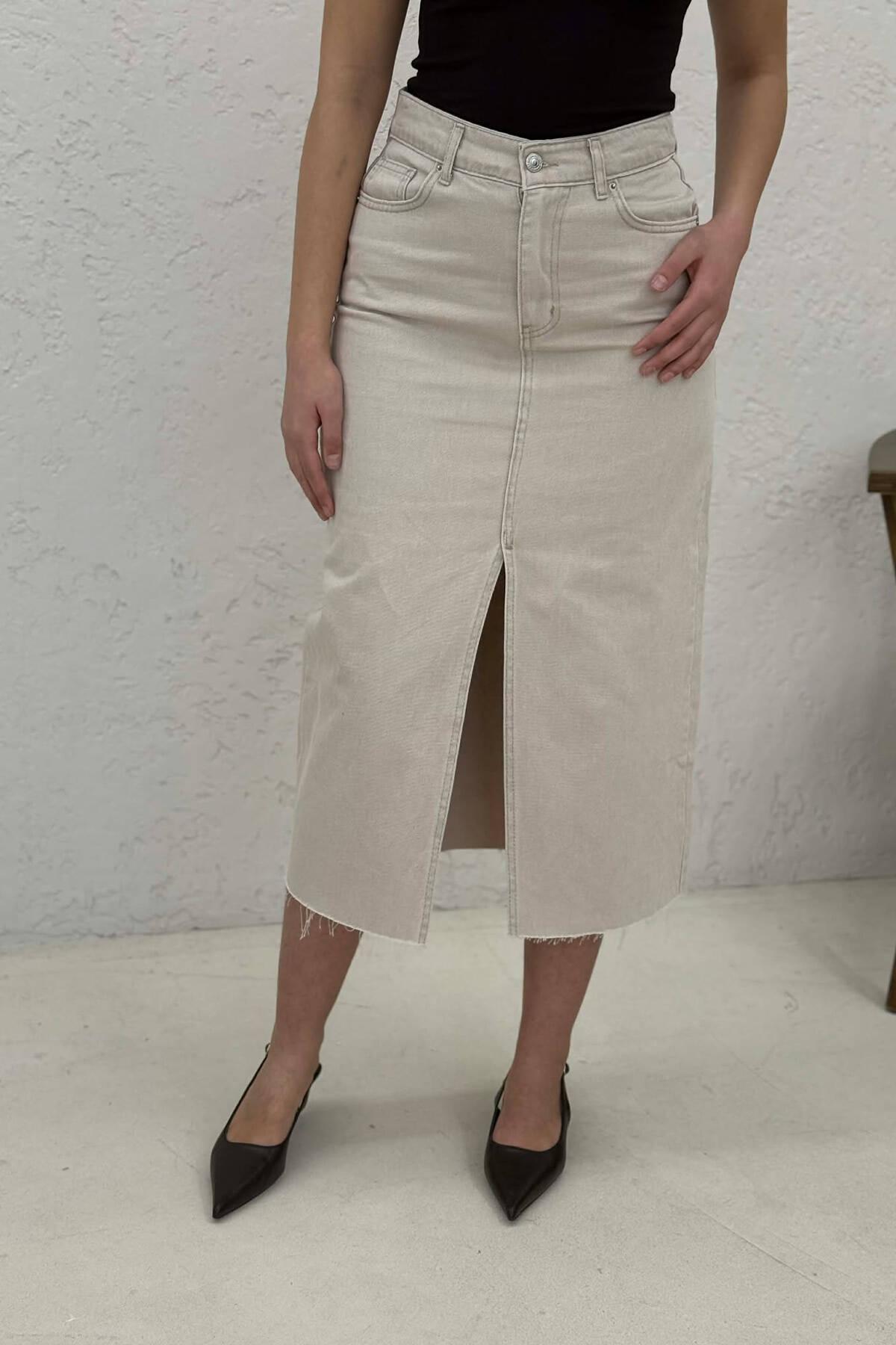 FRONT CUT DENIM WOMEN SKIRT BEIGE/BEZHE