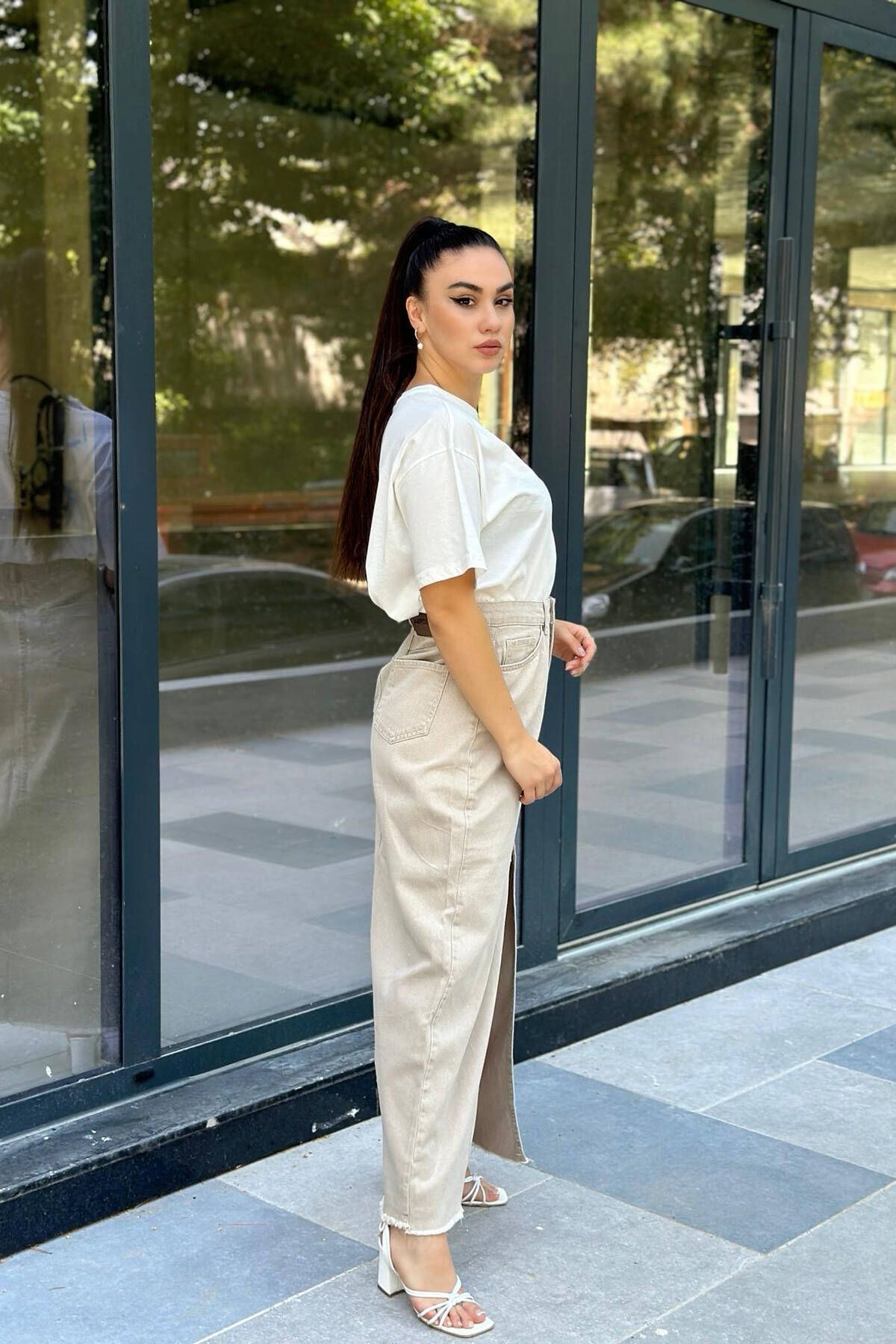 FRONT CUT LONG WOMEN SKIRT BEIGE/BEZHE