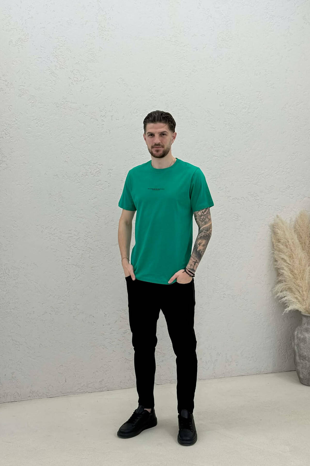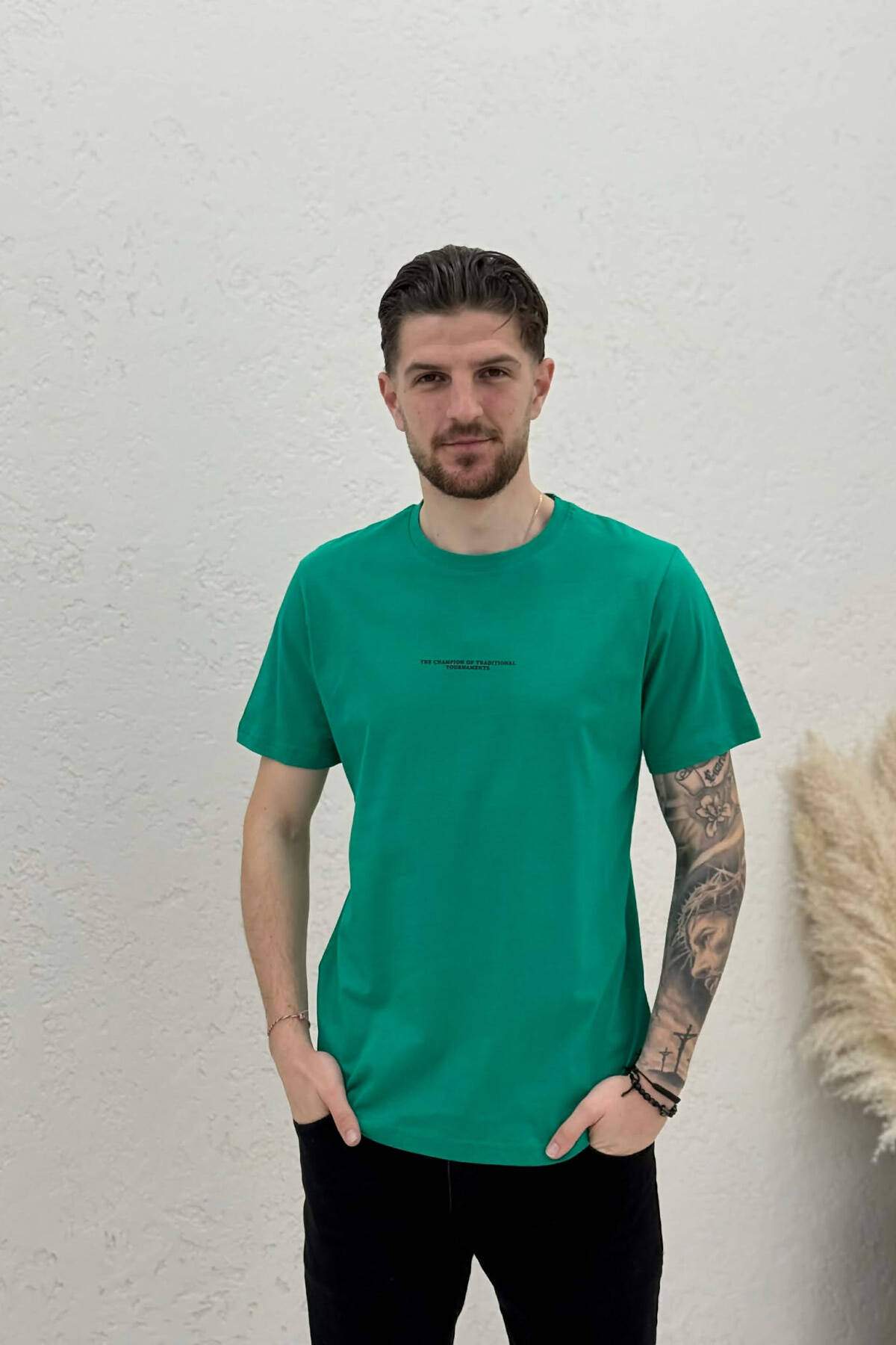 BACK IMAGE & FRONT WRITTINGS MEN T-SHIRT DARK GREEN/JEE