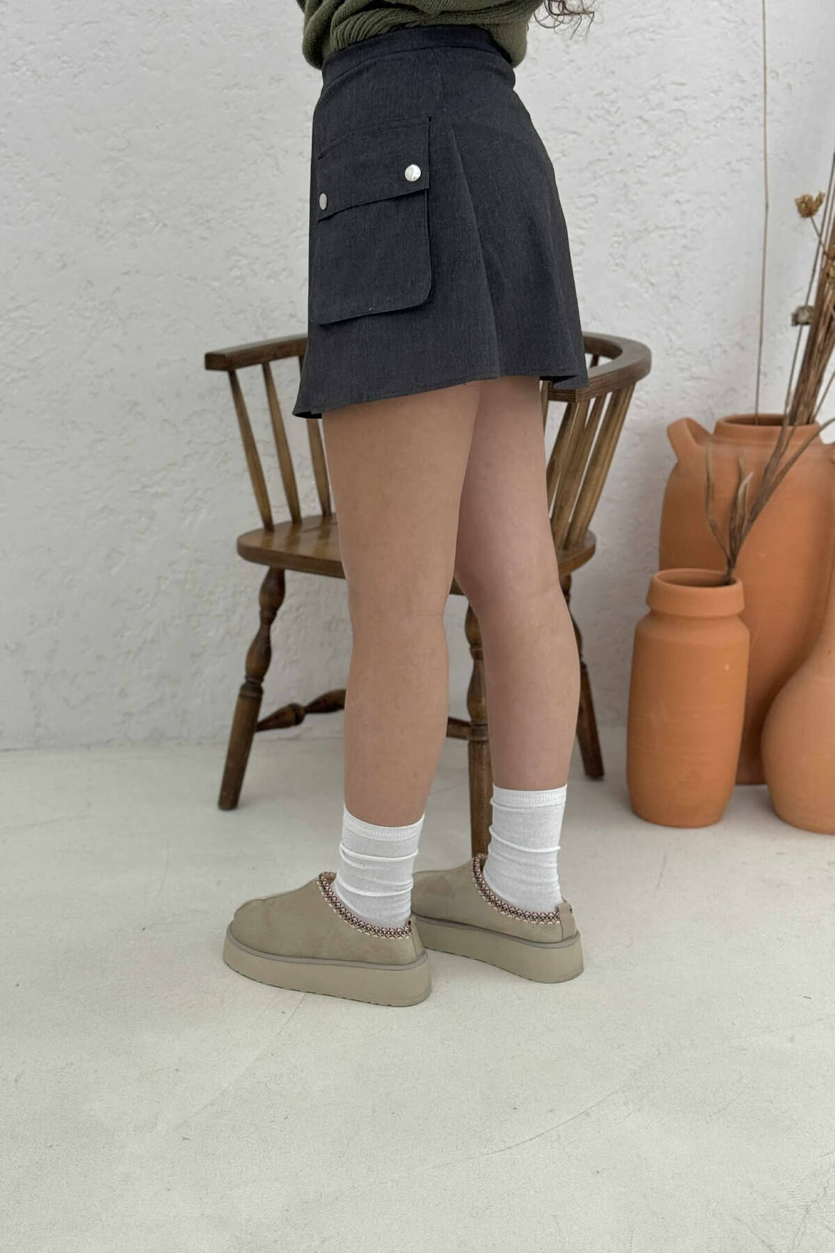 FRONT POCKET WAVING WOMEN SKIRT DARK GREY/GEE