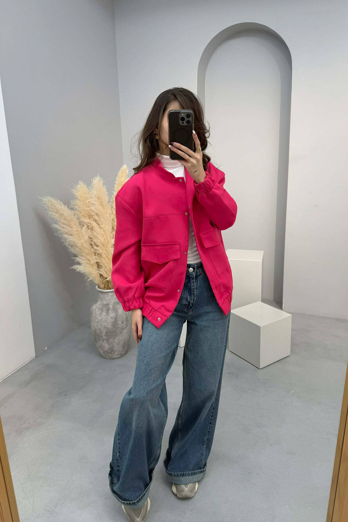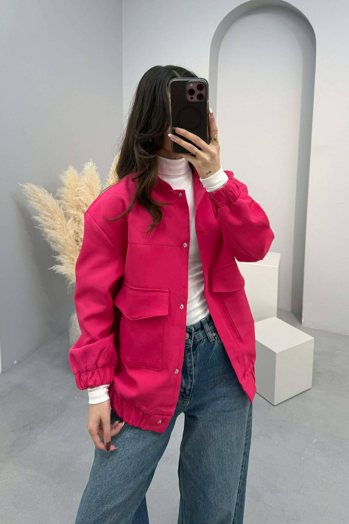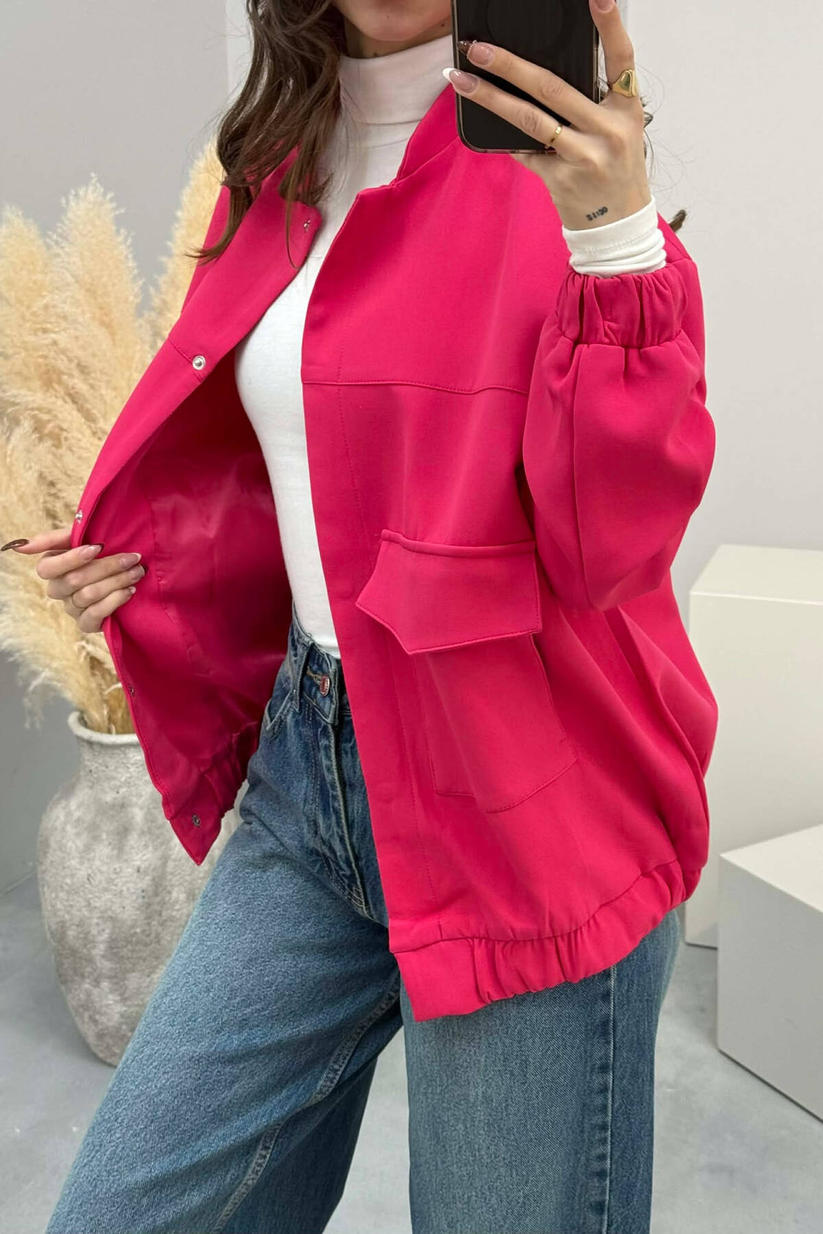 FRONT POCKETS DETAIL ONE COLOR WOMEN JACKET FUCHSIA/CIKLAMI