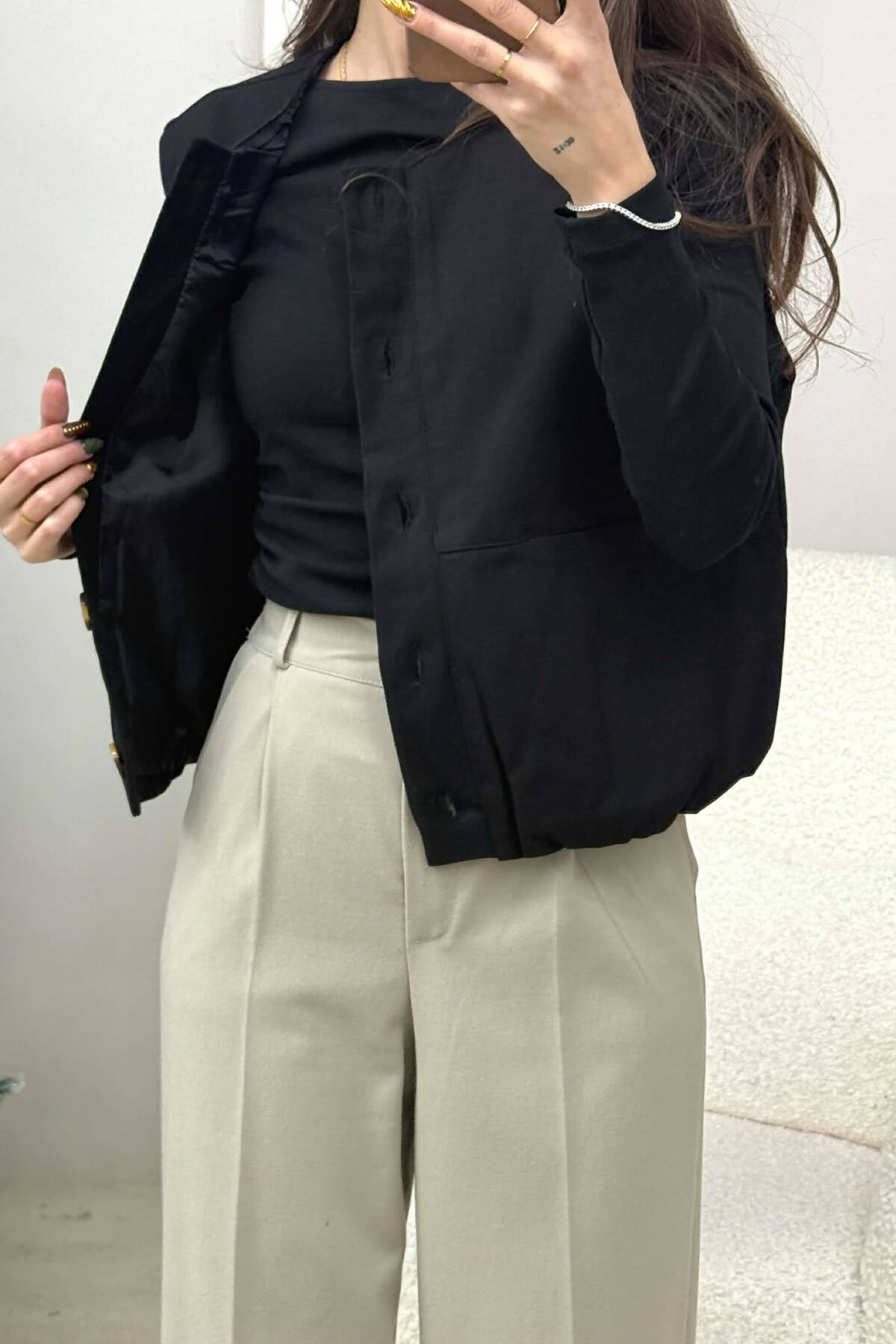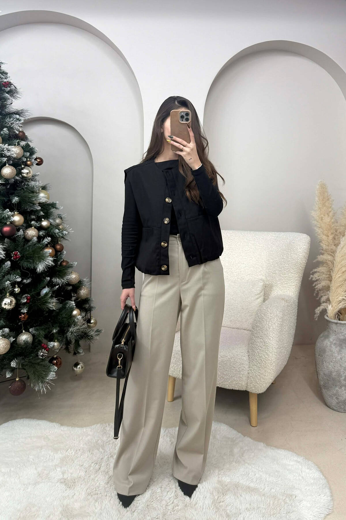 FRONT POCKETS DETAIL ONE COLOR WOMEN VEST BLACK/ E ZEZE