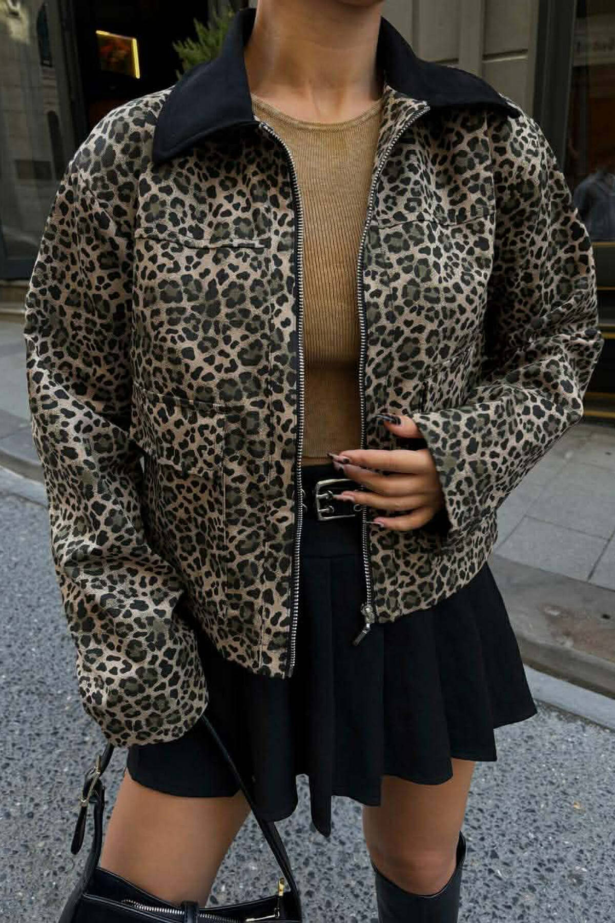 FRONT POCKETS LEO DESIGN WOMEN JACKET LEO/LEOPARD