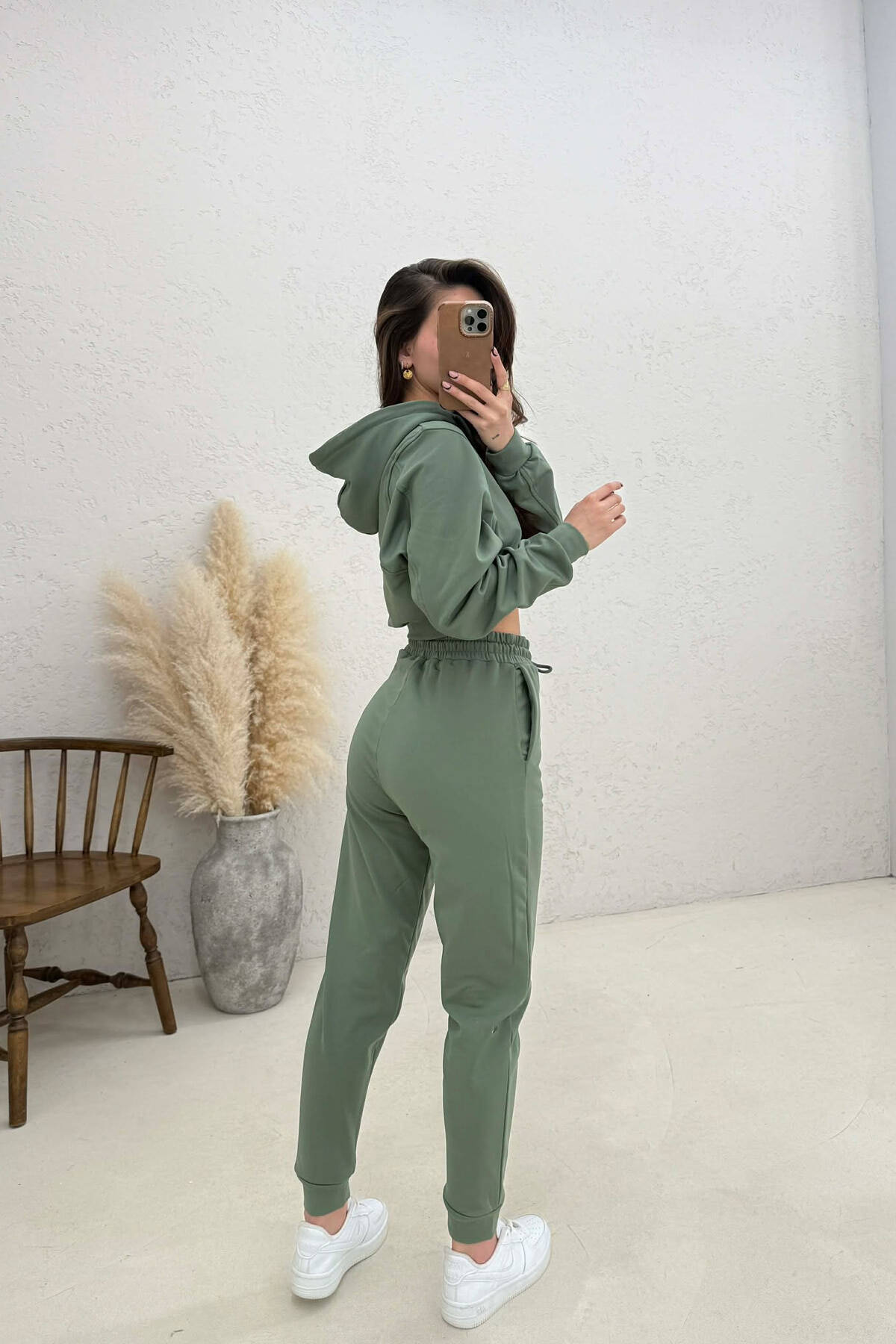 FRONT WRITTING HOODIE + SWEATPANTS WOMAN SET OLIVE/ULLI
